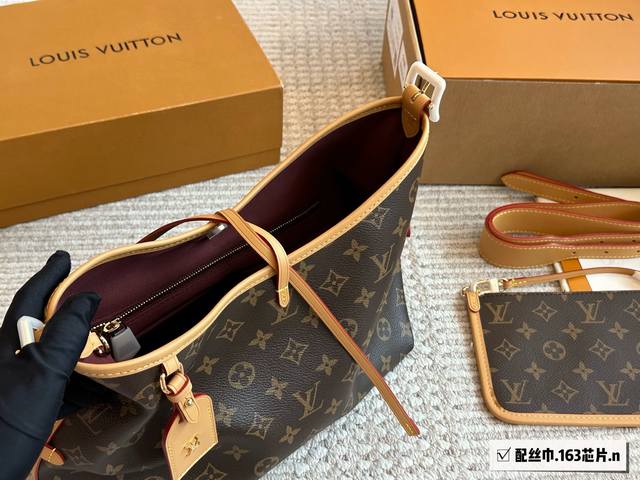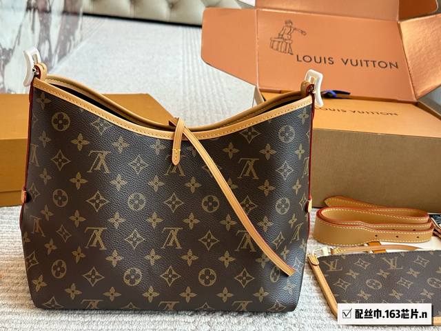 #Carryall V. New for July, it can be worn crossbody or over the shoulder. Its spacious design and open, magnetic closure make it easy to access a tablet or small computer. It's smaller than the Neverfull, with a wide enough shoulder strap for a comfortable fit. It's more playful than the Graceful and fits comfortably. It's a stylish commuter bag from Louis Vuitton, measuring 30cm.