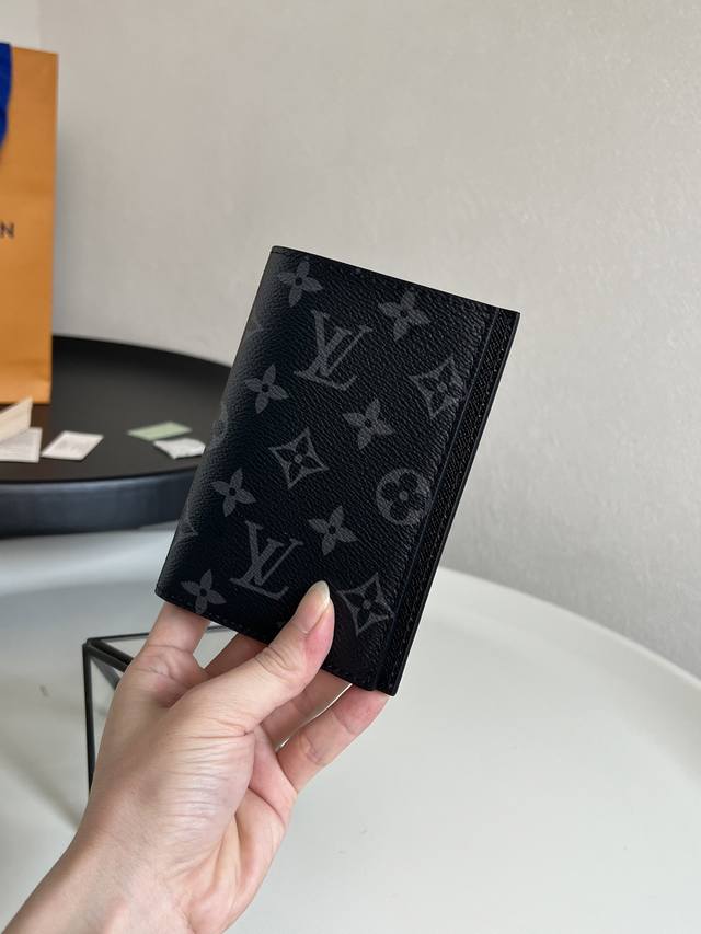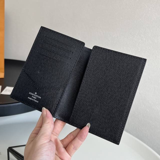 Chip Version M62089 Black Floral Passport Holder! The perfect companion for stylish travel. Luxurious grained calfskin lining, multi-compartment interior, a classic travel accessory. The image of a giraffe carrying a glamorous Louis Vuitton handbag on a shopping spree transforms this elegant passport holder into a cute icon. 10.0 X 14.0 X 2.5 Cm (Length X Height X Width). DDD