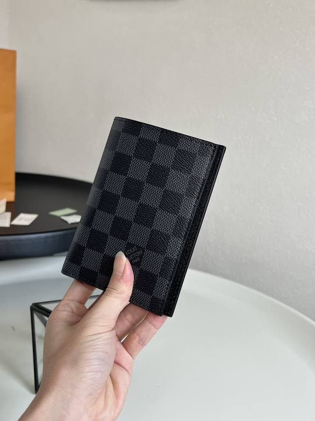 Chip Version N62089 Black Check Passport Holder! The perfect companion for stylish travel. Luxurious grained calfskin lining, multi-compartment interior, a classic travel accessory. The image of a giraffe carrying a glamorous Louis Vuitton handbag on a shopping spree transforms this elegant passport holder into a cute icon. 10.0 X 14.0 X 2.5 Cm (Length X Height X Width). DDD