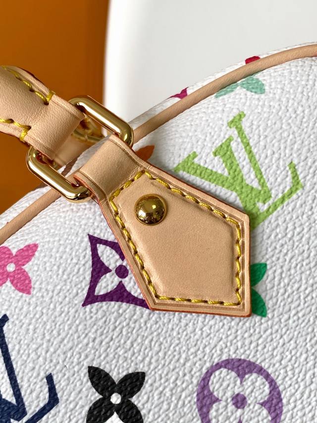 Dynamic 163 M13084 This Handbag East West is from the Louis Vuitton x Takashi Murakami reissue collection, featuring a full Monogram pattern rendered in the artist's signature rainbow hues. The horizontally oriented lines are fluid, with top handles, studded side straps, a detachable and adjustable shoulder strap, and an LV x Tm key pouch incorporating cowhide leather details. Refined corners pay homage to the brand's traditional trunk design. 14 x 10 x 27 cm (H x W x Length) A.850 DDD