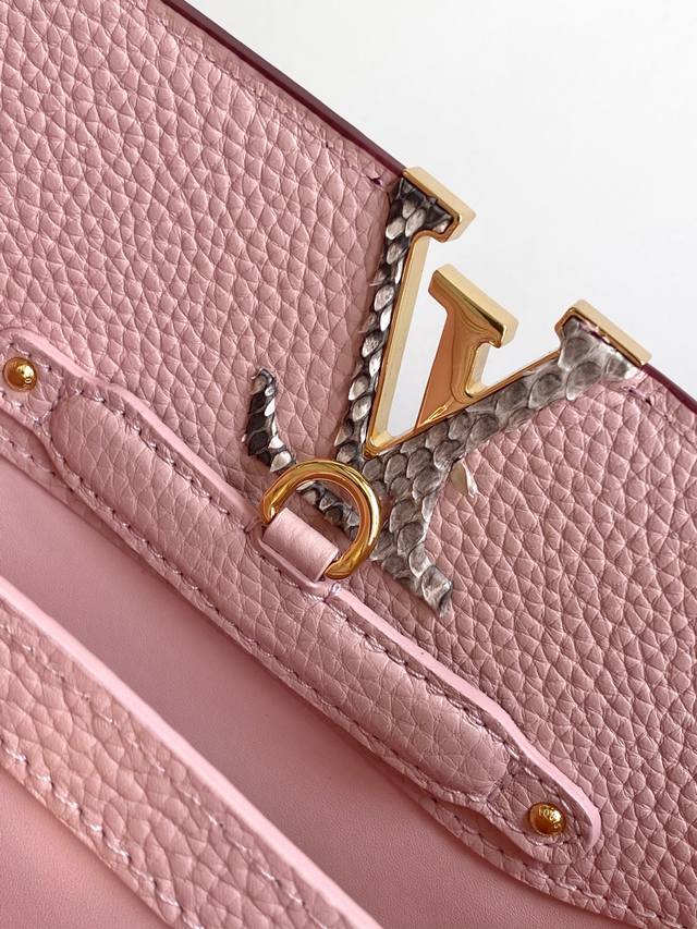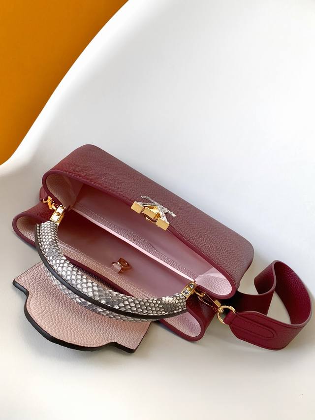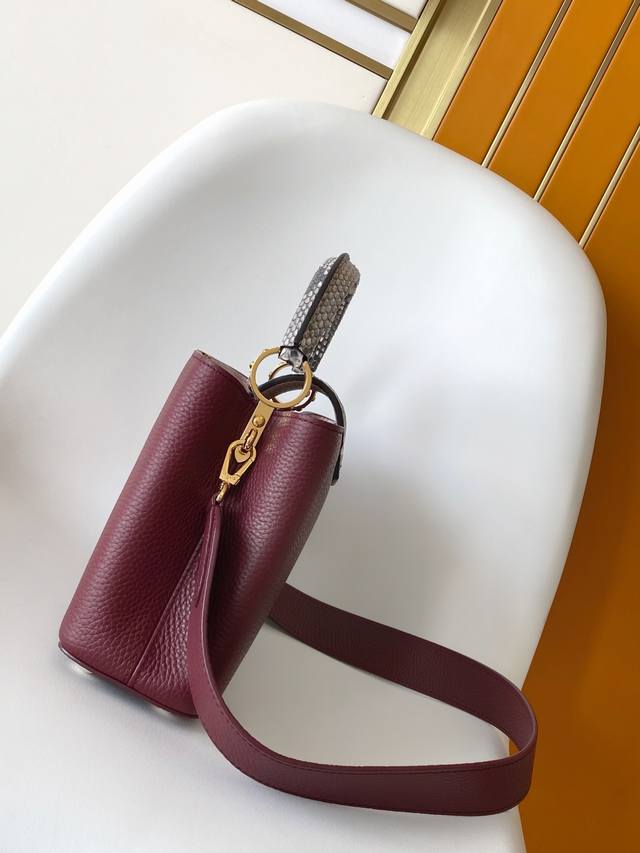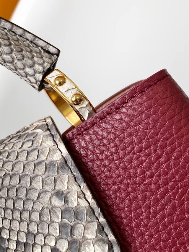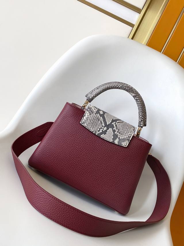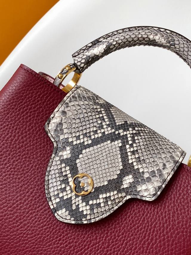 N94755 Gold Buckle With Snakeskin Capucines Handbag Is Classic And Elegant. It Is Made Of Full-Grain Taurillon Leather And Combines Exquisite And Elegant Details, Including Handles With Moderate Hardness, Gorgeous Buckles Connecting The Handles, As Well As Spacious And Practical Shape And Two Inner Compartments. Na Ying Snakeskin Wrist, Na Ying Snakeskin Wrist Full Leather Women's Bag Brown Oo [Handshake] [Handshake] Its Unique Hanging Cover Can Be Used In Two Ways: Placed Outside The Bag To Show The Monogram Flower Pattern, Placed Inside The Bag To Reveal The Lv Initials. Size 27Cm
