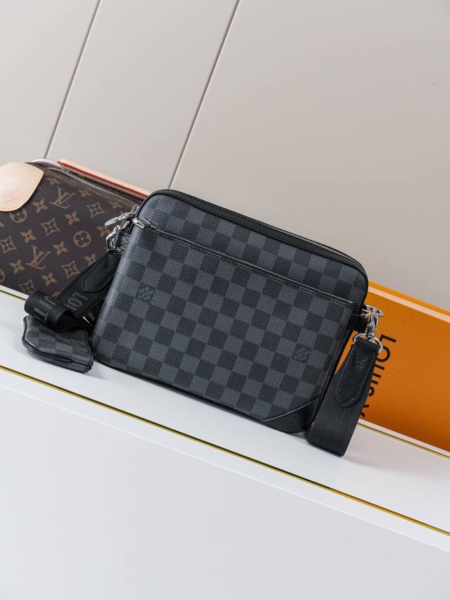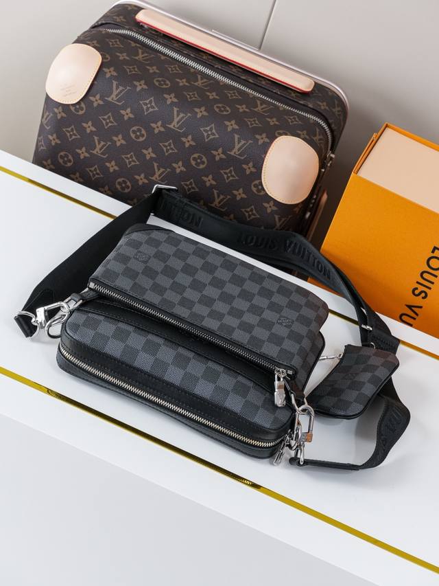 Dynamic 163C01 chip M40519 Black, top-grade original, real-life photos. This Trio Messenger bag features Louis Vuitton's classic Damier graphite canvas, a timeless signature for this new version of the Trio Messenger. The main compartment is complemented by a removable zippered pocket and a separate coin purse that attaches to the strap, perfect for carrying change and contactless payment cards. An elegant everyday bag that combines modern functionality with a unique traditional look. Dimensions: 25.0 x 18.5 x 7.0 cm (L x H x W)