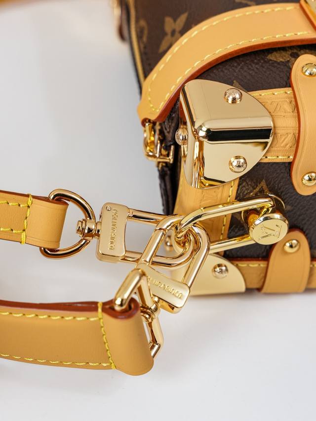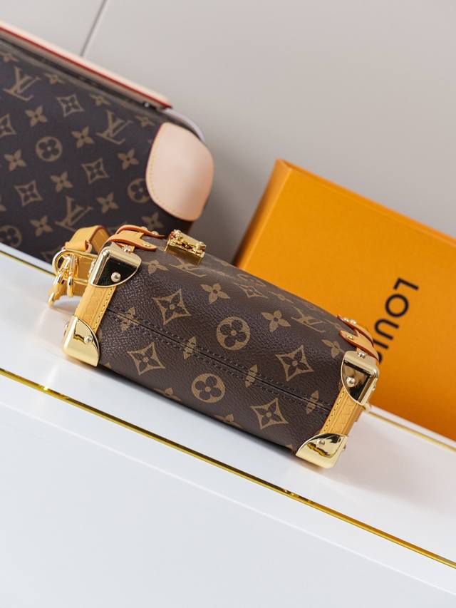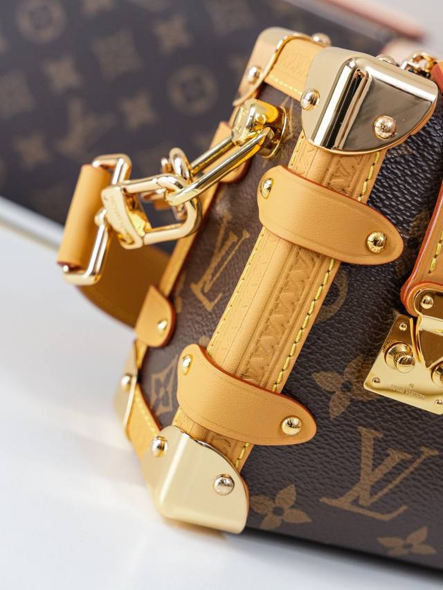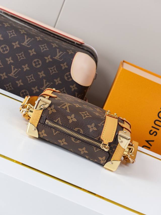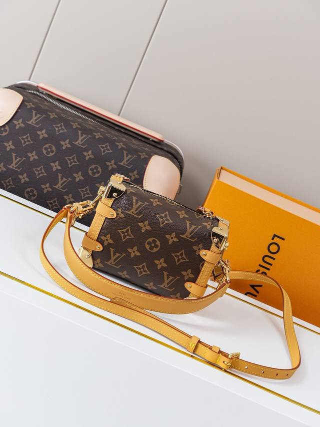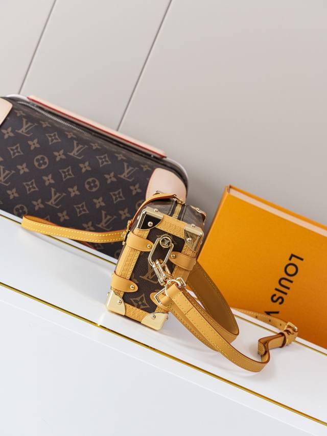 Dynamic 163C01 chip M46815 Presbyopia, top-quality original, real-life photos. This small Side Trunk bag features a rectangular shape in Monogram canvas, accented with cowhide leather trim and refined hardware. Reinforced corners and an S-Lock closure with a zipper add a touch of sophistication, evoking the classic Louis Vuitton trunk heritage. A detachable and adjustable leather shoulder strap allows for easy hand or shoulder carry. Dimensions: 19.0 x 12.5 x 7.5 cm (L x H x W x