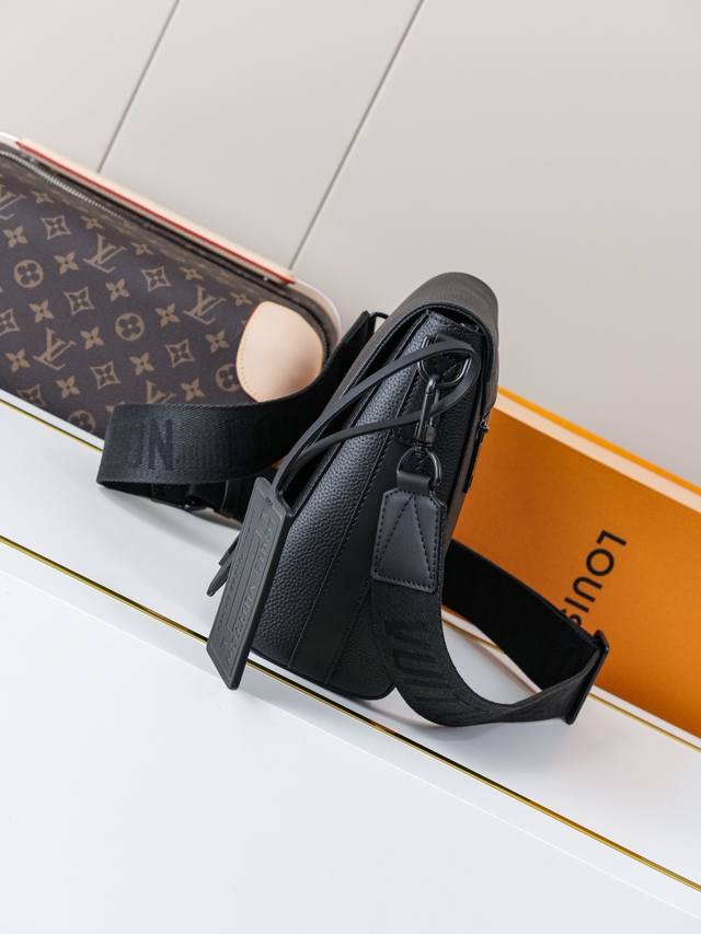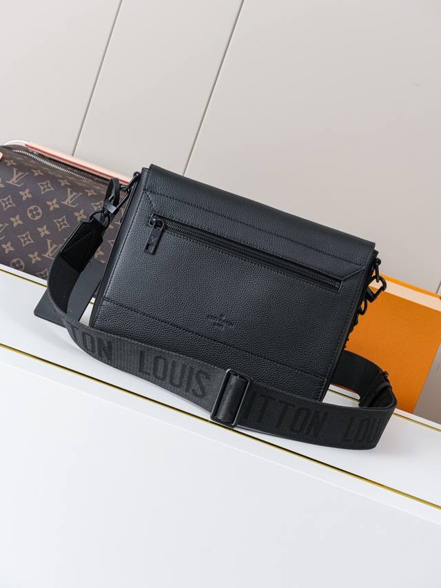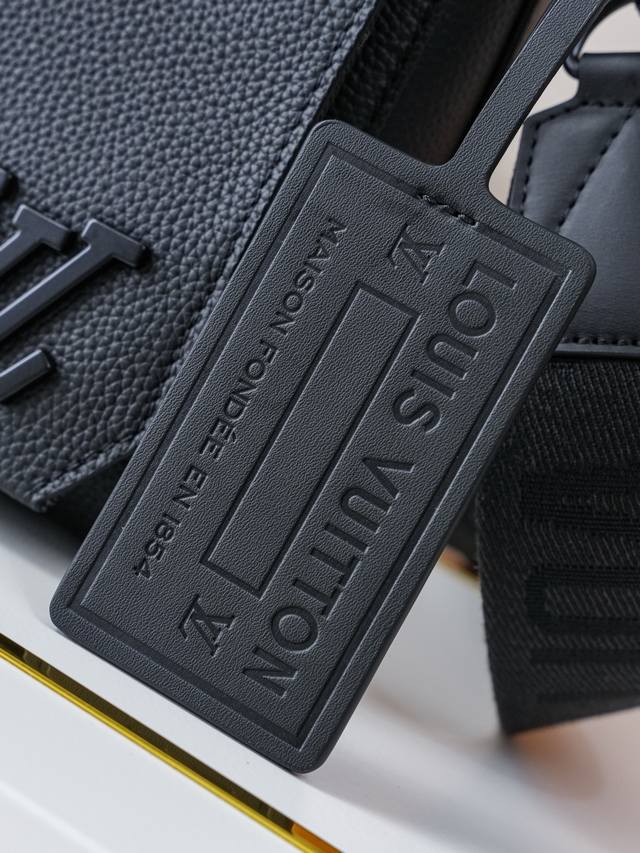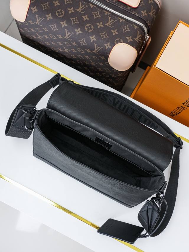 Dynamic 163C01 chip M57080 Black, top-grade original, real-life home background photo. The LV Aerogram messenger bag boasts a minimalist design with a trendy feel: the customizable label on the fine cowhide leather surface resembles the stamps on old-fashioned airmail stationery. The right-angled flap opens to the interior, which can accommodate a phone, tablet, and documents. The zippered back pocket securely stores valuables.