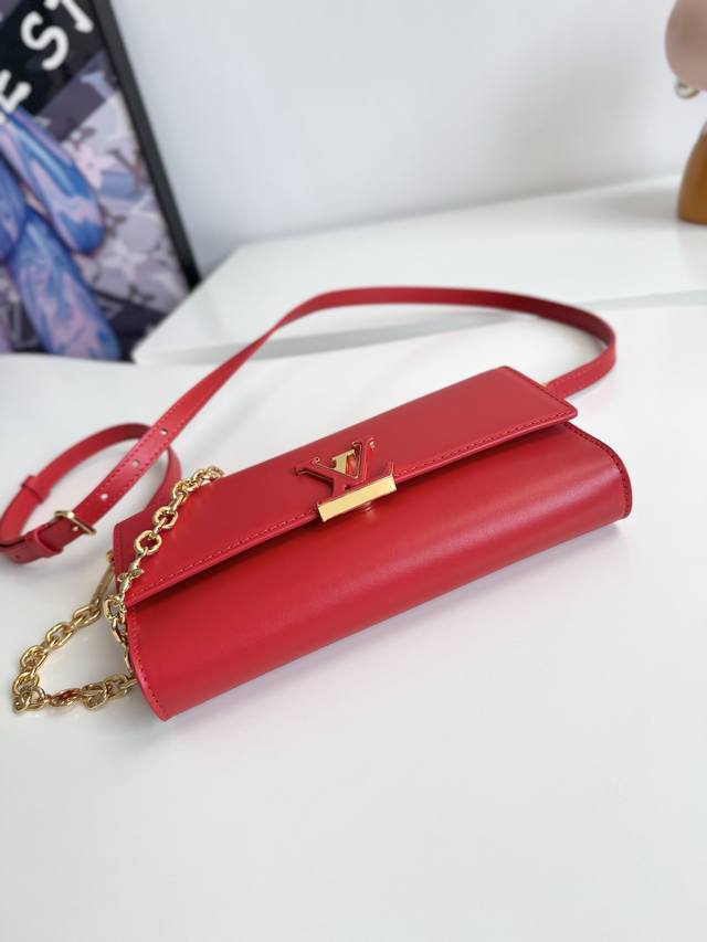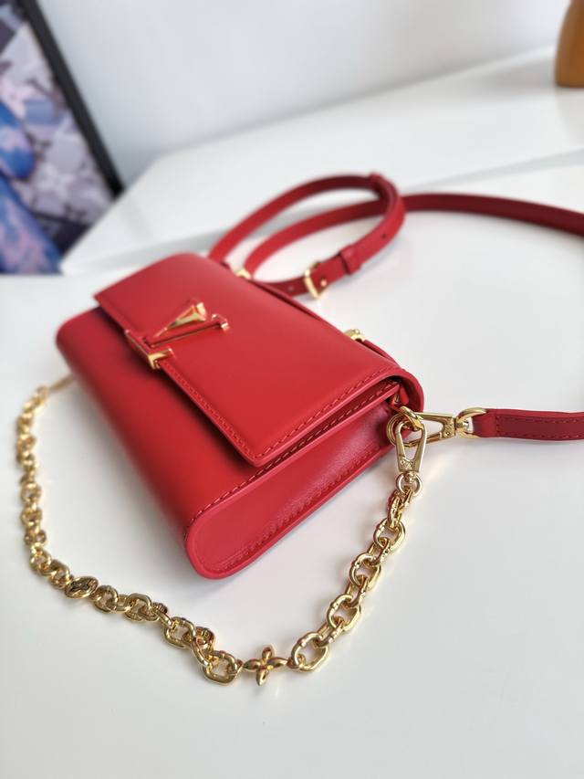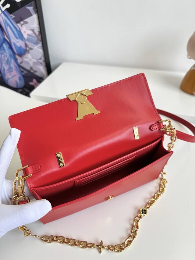 Dynamic chip with counter packaging "Exclusive photos of the overseas original M12405! The Wallet On Chain Capucines handbag combines exquisite craftsmanship with elegant style. The classic Lv monogram is embellished on smooth leather and features a detachable metal chain and leather shoulder strap, allowing it to be carried by hand, on the shoulder, or across the body. The neat interior features a Monogram floral magnetic clasp, a patch pocket, and a card slot. Dimensions: 23