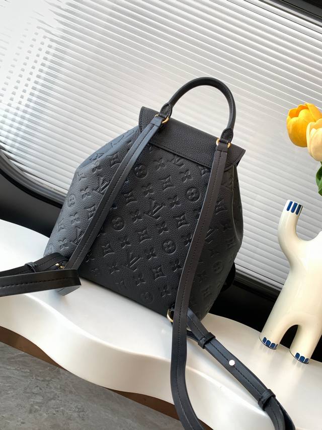 Montsouris 45205 three-color backpack, this time wearing Monogram Empreinte embossed leather, embellished with retro metal buckles and LV pendants. Zippered outer pockets for easy access, adjustable shoulder straps for a comfortable carrying experience. 27.5 X 33 X 14 cm length X height X width code 578655