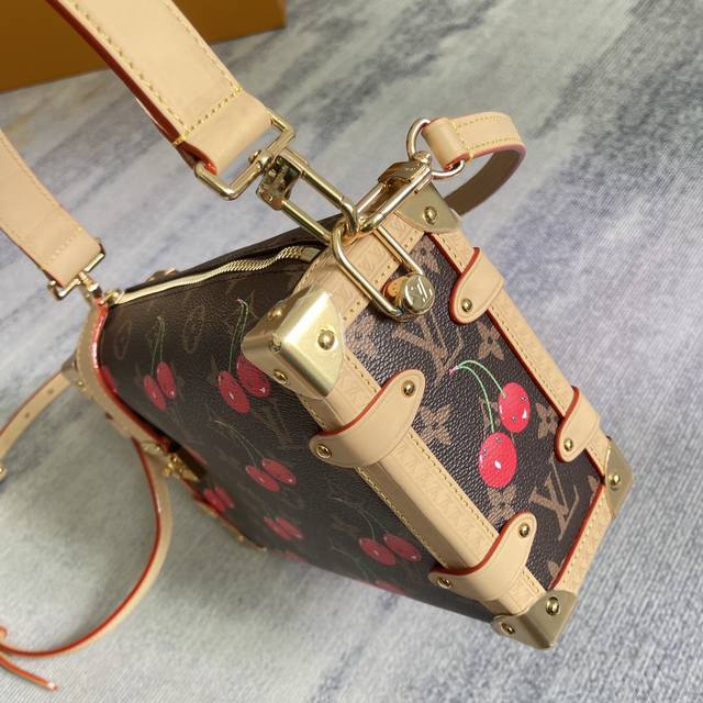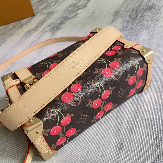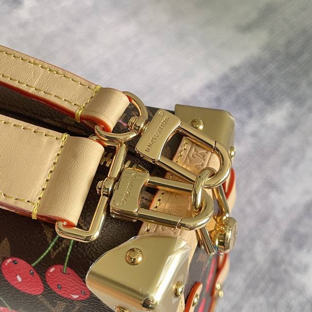 This Side Trunk medium handbag, with its playful Monogram pattern, embodies the dynamic style of the Louis Vuitton x Takashi Murakami re-edition collection. Crafted from supple cowhide leather with reinforced metal corners and the signature S-Lock clasp, it easily accommodates everyday essentials. Its squared-off shape is a nod to the brand's classic trunks, with a removable studded handle and shoulder strap for flexible carrying. 23.5 x 16.0 x 8.5 cm (L x H x W)