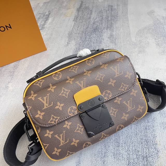 Exclusive real shot of this S Lock messenger bag M58489 embossed M45806 black M45836 blue M46243 purple M46246 green is made of Monogram Macassar canvas. The new lock is inspired by the hard case lock designed by Georges Vuitton in 1886. The special finishing process gives this magnetic metal lock a striking and modern look. It is also equipped with a spacious zipper compartment, a hard case style leather handle and an Lv logo shoulder strap, which is stylish and easy to use. Size: 22.18.8