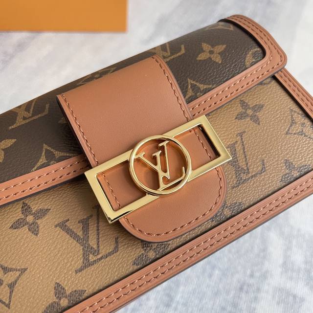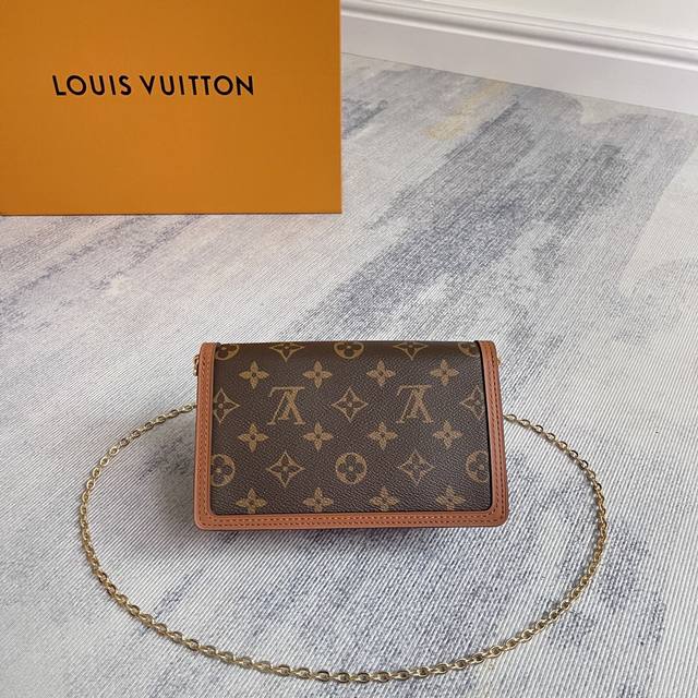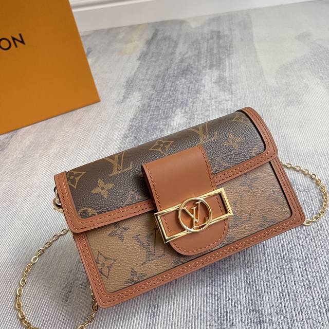 , first layer leather M68746, exclusive original single This Dauphine chain bag combines the two canvases of Monogram and Monogram Reverse, condensing the iconic elements of the Dauphine series: retro appearance, cowhide trim and Lv Circle hook. It has ample space and is equipped with a detachable chain strap, providing a variety of carrying options. 18.5 x 12.0 x 5.0 cm long x high x wide
