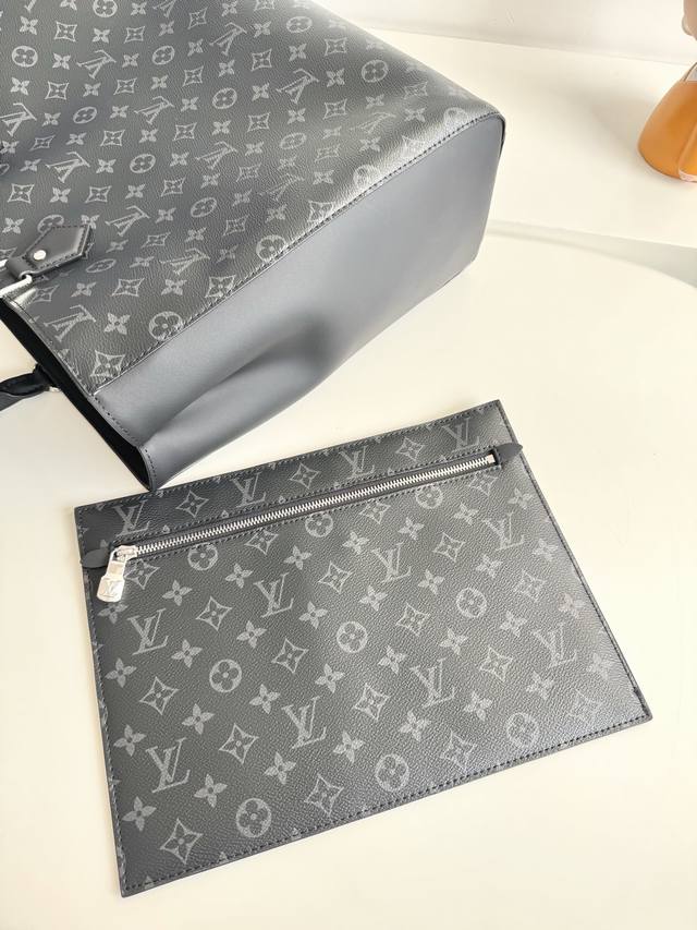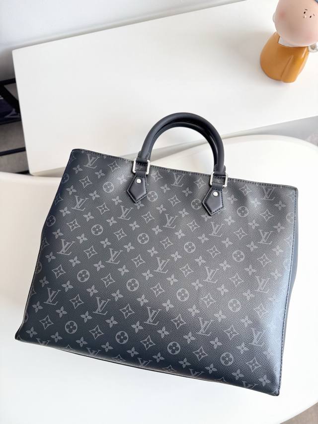 Exclusive photos of the dynamic chip M44733, an original overseas order! Inspired by Louis Vuitton's classic Sac Plat handbag from the 1960s, the Grand Sac handbag is reimagined in Monogram Eclipse canvas. Ample storage for office essentials or short trips, including a removable zippered inner pocket. Dimensions: 42 x 34 x 14 cm