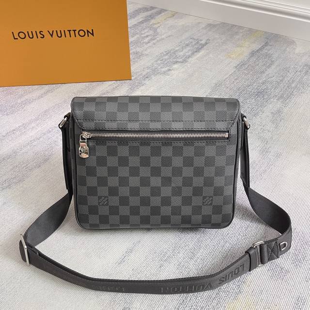 Exclusively customized, real-life photos of the dynamic chip original enhanced version M42710 black grid top-grade original single-handedly photographed with real-life background photos. This District small messenger bag is more square and compact than the previous version, enhanced with Damier Graphite coated canvas to enhance the classic silhouette and refined proportions. Zippered exterior and interior pockets keep items organized, and the Louis Vuitton logo shoulder strap is adjustable. 26.0 x 20.0 x 7.0 cm (Length x Height x Width)