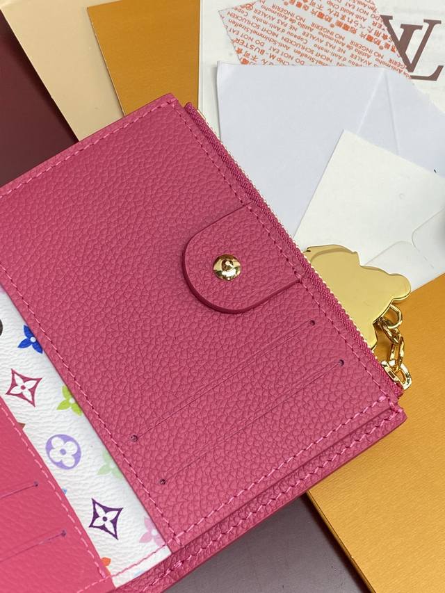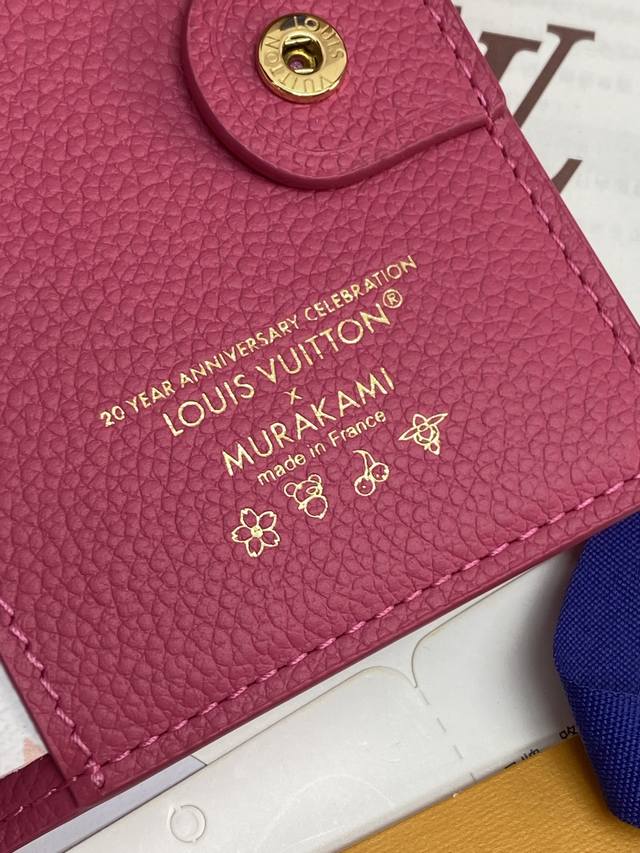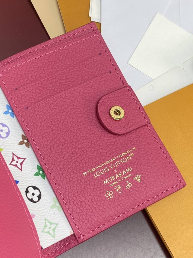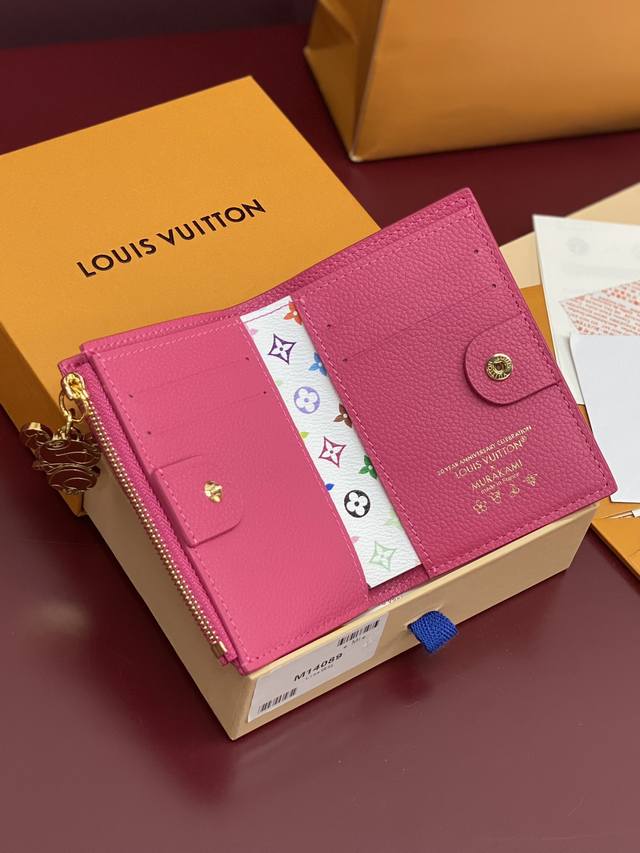 Factory Price P M14089 Rose Red Chip Edition Lisa Wallet Is An Everyday Essential. Practical And Compact Design With Fixed Coin Pocket, Bill Compartment And Multiple Card Slots. Made Of Elegant Monogram Empreinte Leather From The Louis Vuitton X Murakami Collection In Fresh Seasonal Tones. Colorful Monogram Pattern Can Be Seen Inside. Gold Panda-Shaped Pull Handle Adds Vitality To The Zipper.