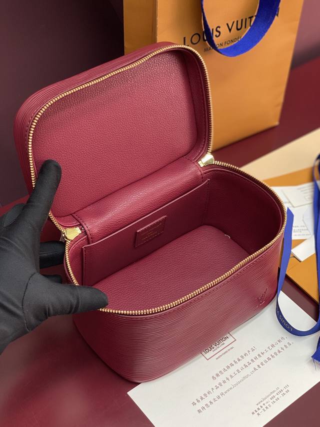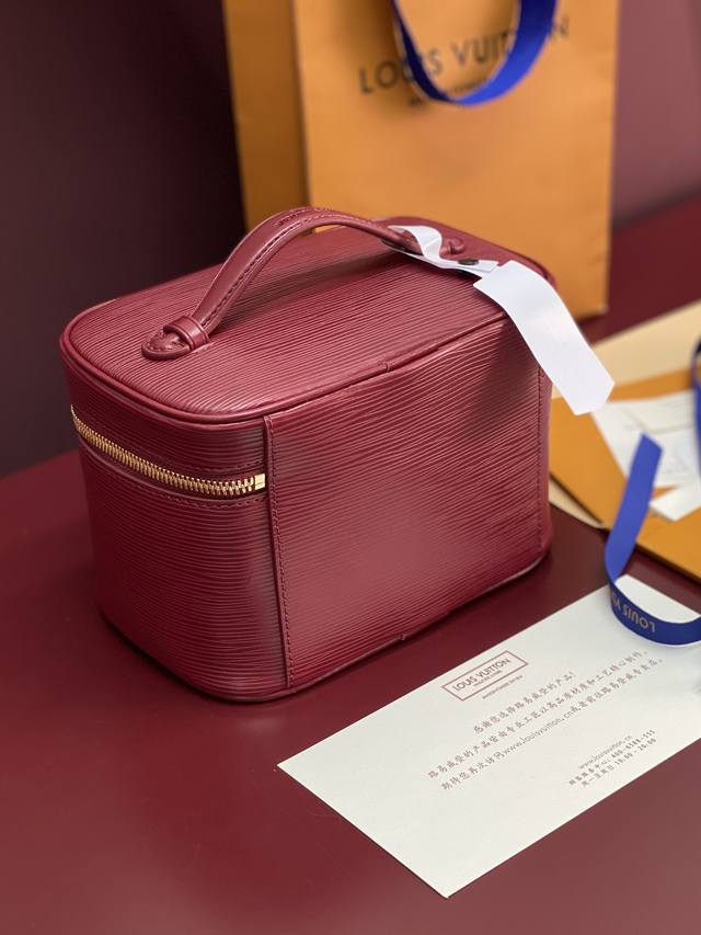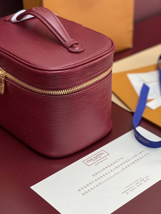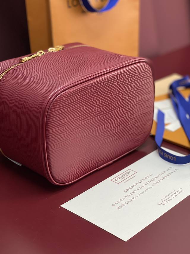 Factory Price p M25856 Purple Medium! New Seasonal Nice Nano Cosmetic Bag with Water Ripple Texture. This Nice Nano cosmetic bag boasts a luxurious style constructed from grained Epi leather and a washable fabric lining, subtly echoing the lipstick colors of the Louis Vuitton Beauty collection. Double zipper closures and an interior slip pocket highlight its functionality; its compact design easily accommodates toiletries and cosmetics, making it another great travel companion. 13.5 X 12 X 20 cm. DDD