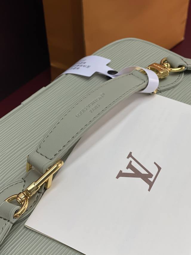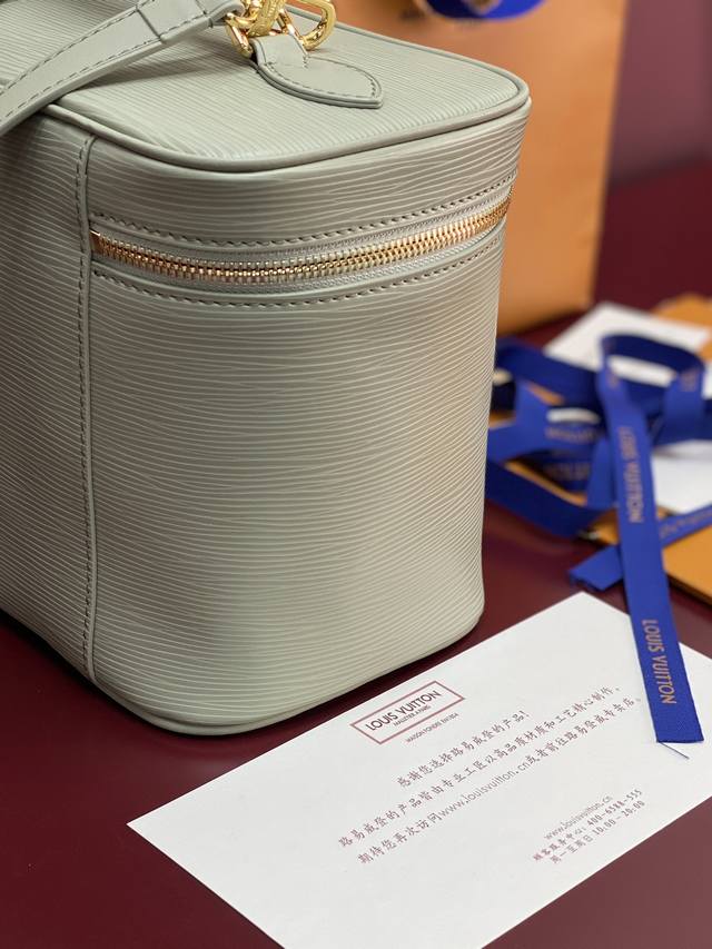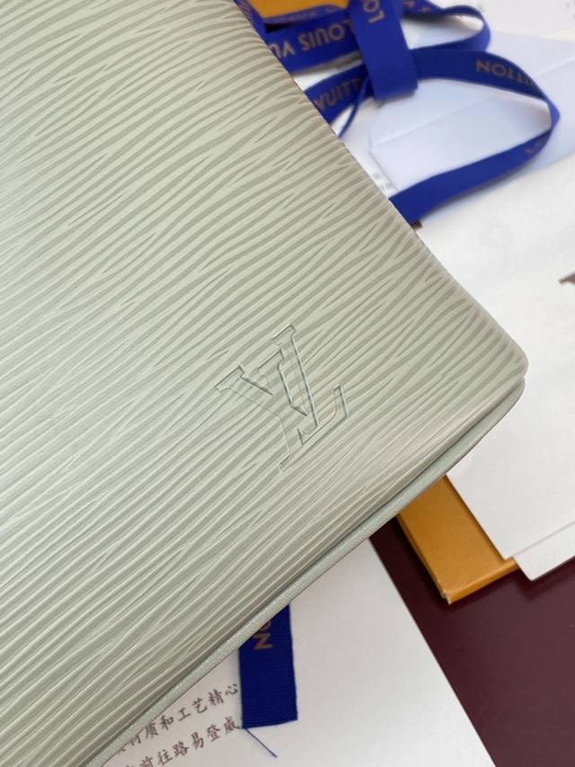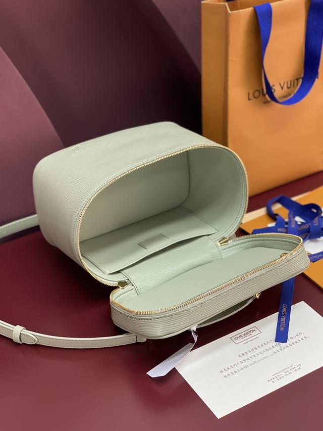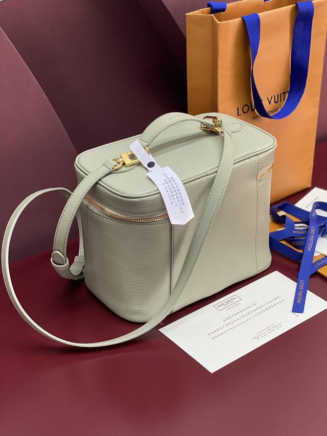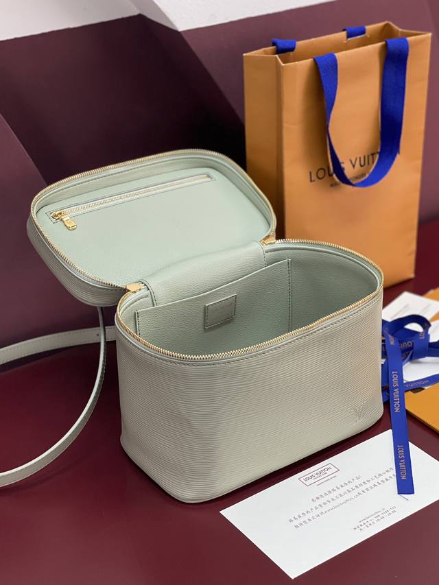 Factory Price p M25857 Light Green Large! New Seasonal Nice Nano Cosmetic Bag with Water Ripple Texture. This Nice Nano cosmetic bag boasts a luxurious style constructed from grained Epi leather and a washable fabric lining, subtly echoing the lipstick colors of the Louis Vuitton Beauty collection. Double zipper closures and an interior slip pocket highlight its functionality; its compact design easily accommodates toiletries and cosmetics, making it another great travel companion. 24 x 14 x 17 cm. DDD