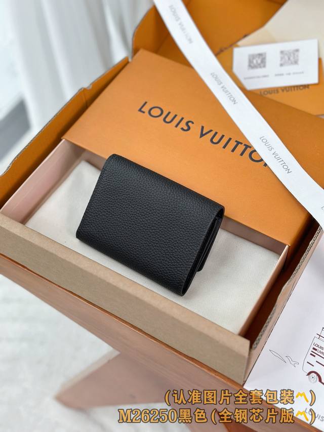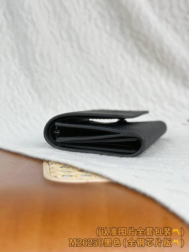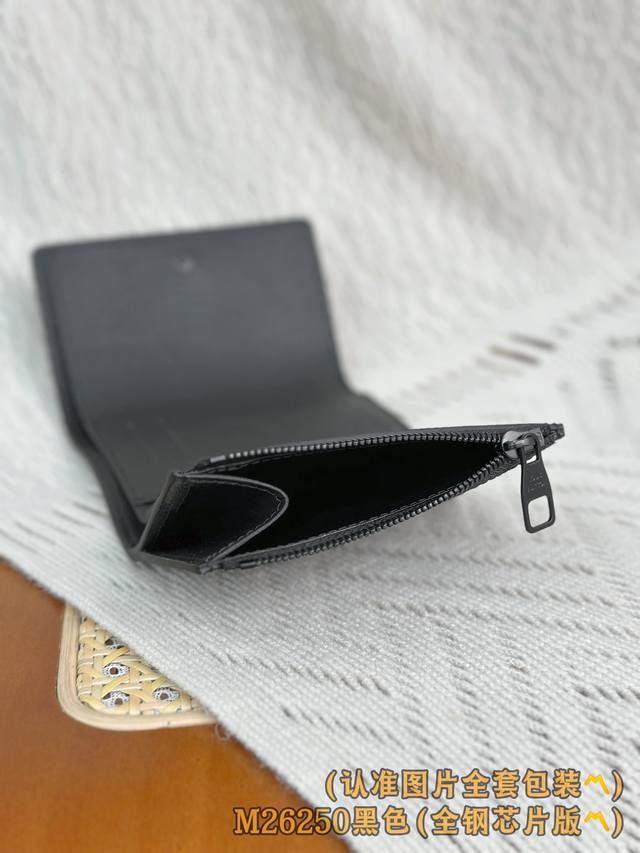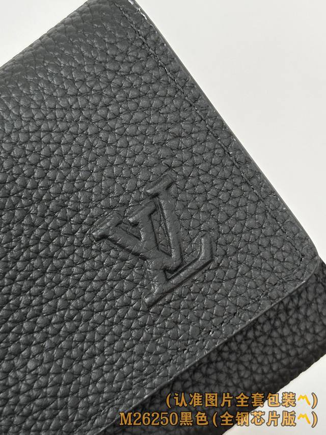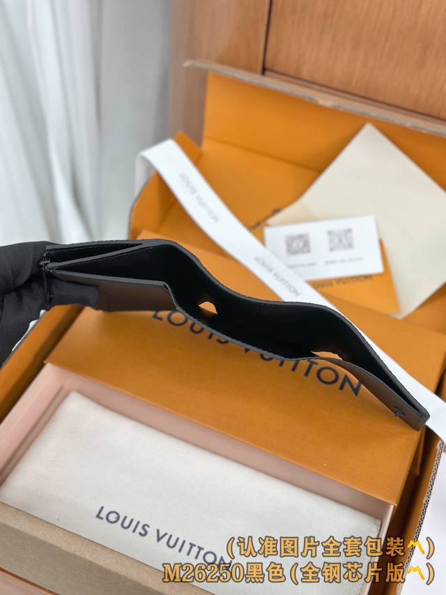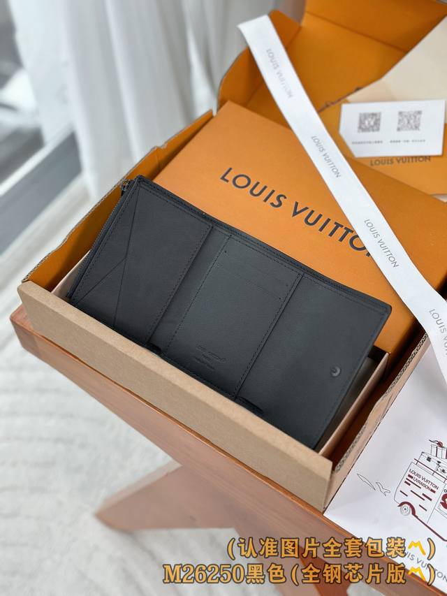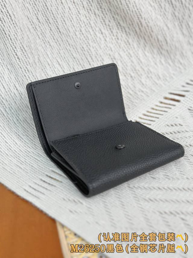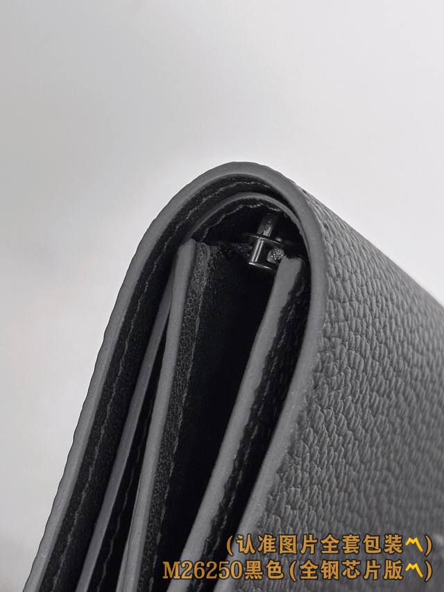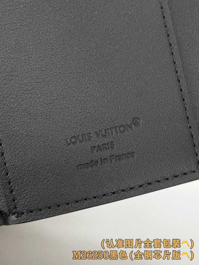 Factory Price p M26250 Black Grade A All-Steel Version Personalized Customization, Variable Code Chip! Victor Wallet: This compact Victor wallet is crafted from waxed calfskin with a refined style. The wallet is extremely practical, revealing a fully functional interior compartment after opening the snap closure, including a zippered pocket, a bill and receipt pocket, five cardholders, and a coin compartment. The LV Initials embossed logo adds a perfect touch to the fine grained leather. Dimensions: 11.5 x 9 x 2.5 cm (Length x Height x Width).