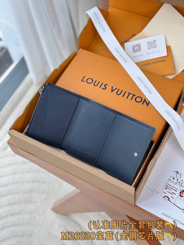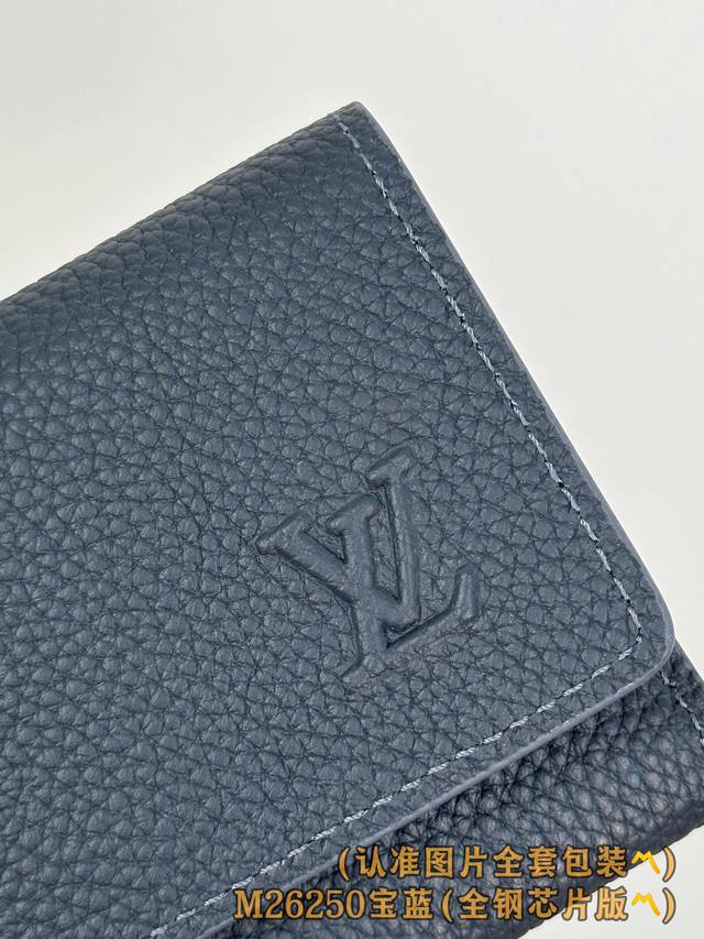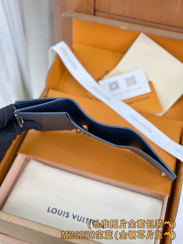 Factory Price p M26250 Royal Blue Grade A All-Steel Version Personalized Customization, Variable Code Chip! Victor Wallet: This compact Victor wallet is crafted from waxed calfskin with a refined style. The wallet is extremely practical; opening the snap reveals a fully functional interior, including a zippered pocket, a bill and receipt pocket, five cardholders, and a coin compartment. The LV Initials embossed logo adds a perfect touch to the fine grained leather. Dimensions: 11.5 x 9 x 2.5 cm (Length x Height x Width).
