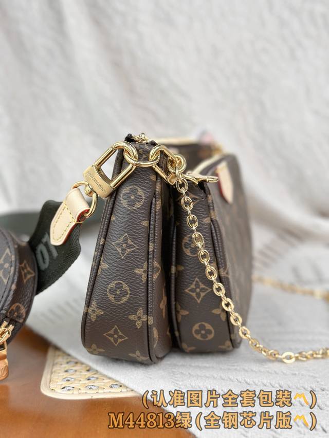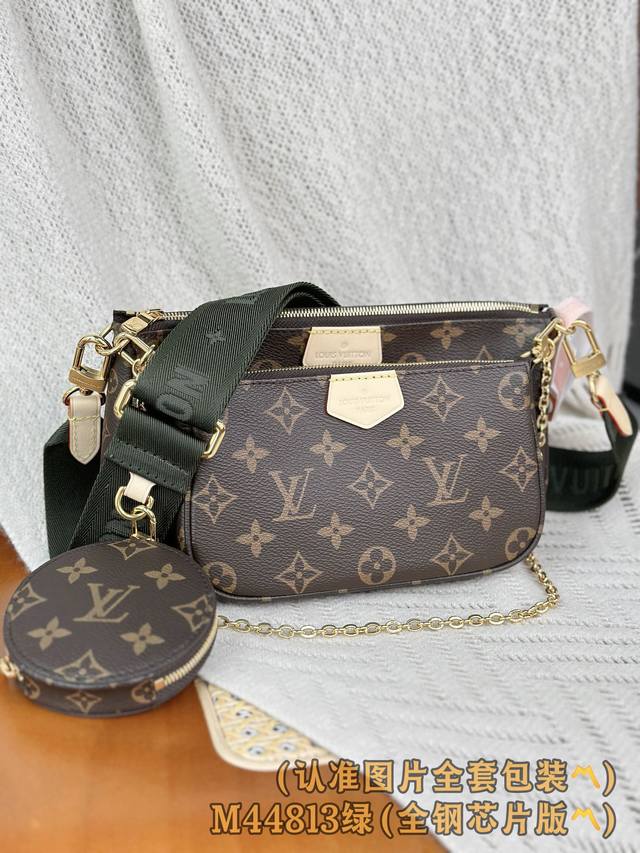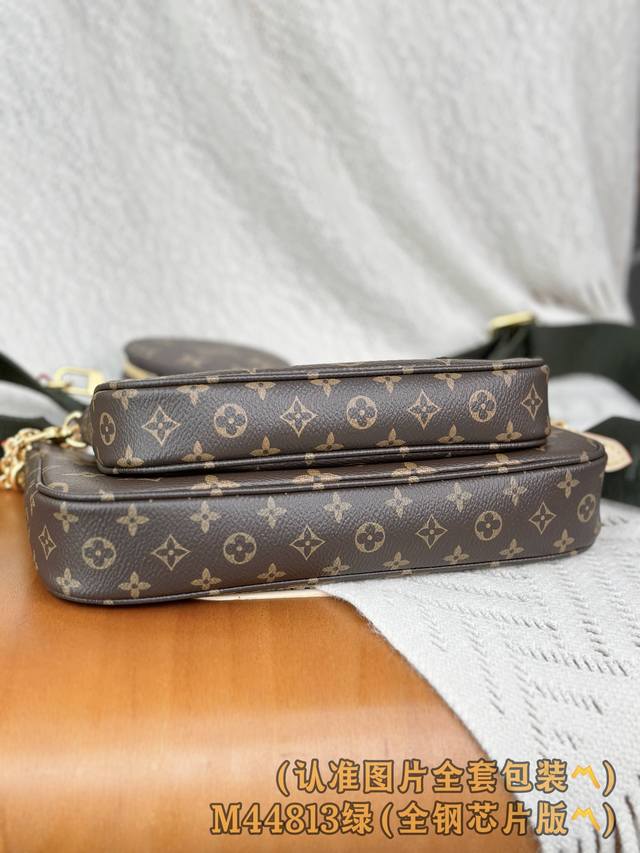 Factory Price p M44813 Green Grade A All-Steel Personalized Custom Version! 163 Variable Code Chip, Multi Pochette Accessoires! This Multi Pochette Accessoires crossbody bag features multiple pockets and compartments, combining a pochette accessoires, mini pochette accessoires, and a round coin purse into one. Made of Monogram canvas, the two side pockets are adorned with mini Monogram patterns, and it comes with a detachable gold chain strap and an adjustable Louis Vuitton jacquard shoulder strap, allowing for multiple carrying options. Dimensions: 24 x 13.5 x 4 cm (Length x Height x Width).