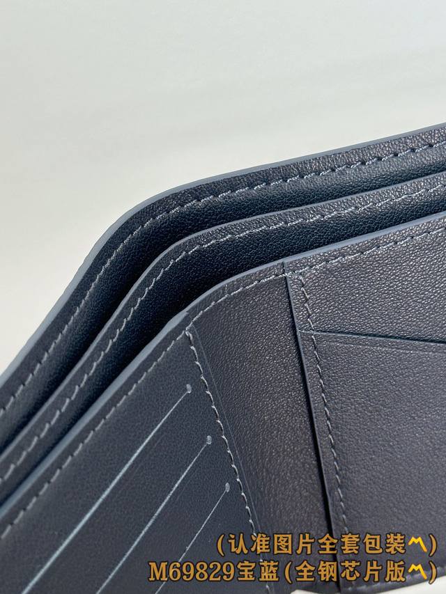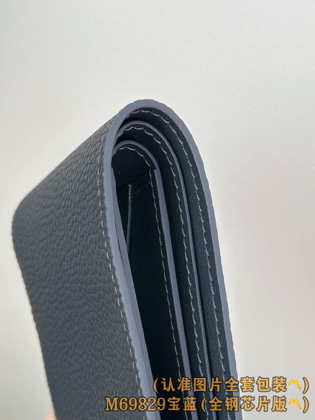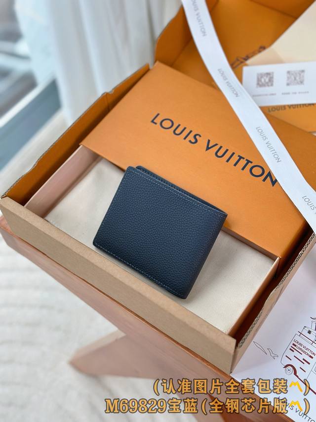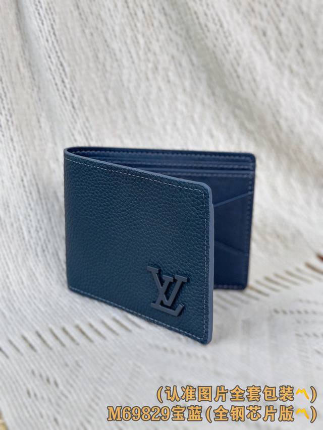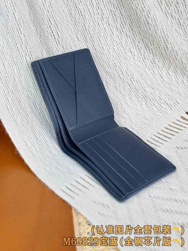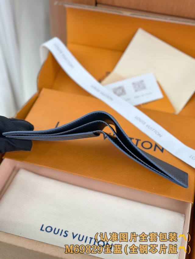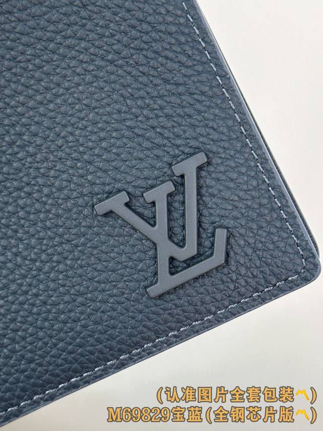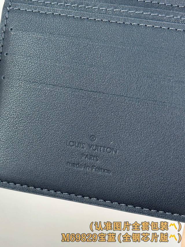 Factory Price p M69829 Royal Blue Grade A All-Steel Version Personalized Customization, Variable Code Chip! This LV Aerogram Multiple wallet reinterprets the classic Multiple wallet with a minimalist and elegant style. The design is crafted from black calfskin with a special kneading technique, highlighting the luxurious grain, while the understated black metal LV logo adds a subtle brand element. Stylish and practical, this wallet is the perfect accessory to complement any LV Aerogram bag. Dimensions: 11.5 x 9 x 1.5 cm (Length x Height x Width).
