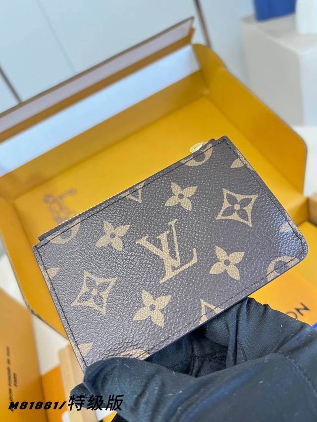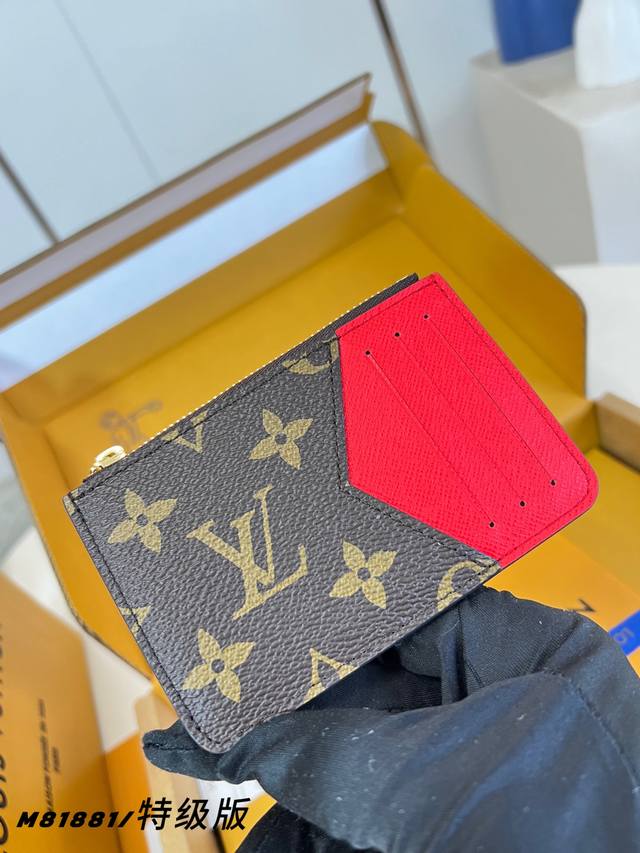 Factory Price p M81881 Premium All-Steel Romy Card Holder combines the functionality of an accordion zippered pocket with the minimalist style of a traditional card holder. Monogram canvas with a colorful leather lining, and Lv Circle metal zipper pulls add detail. It can hold banknotes, coins, or tickets. Detailed Features: 12 x 8 x 0.8 cm (Length x Height x Width)