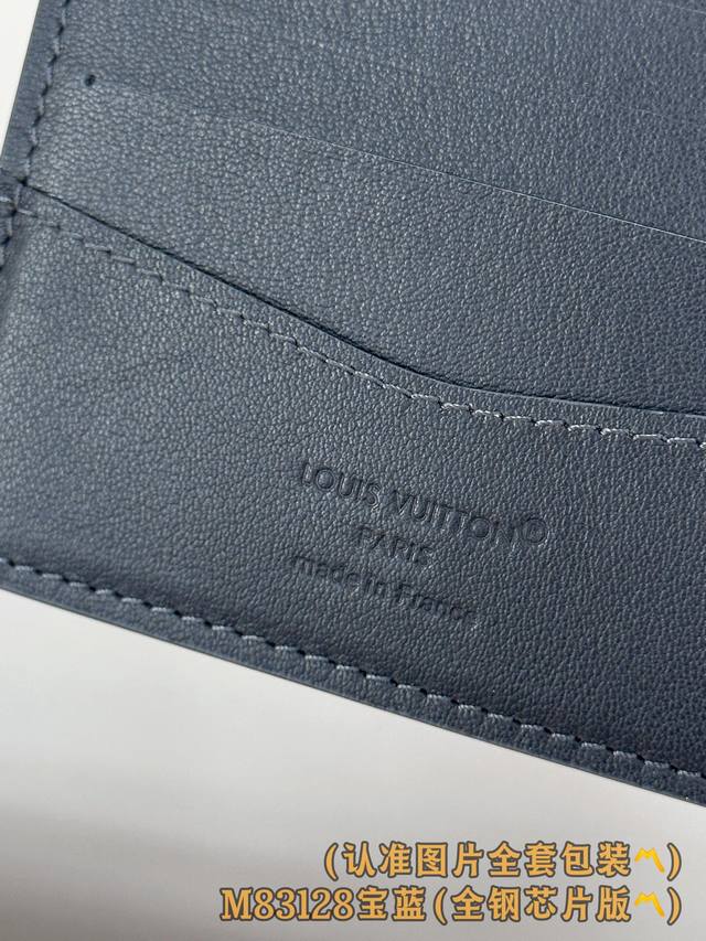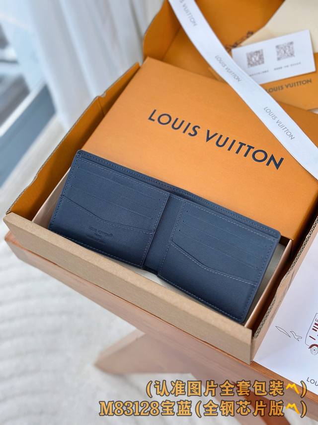 Factory Price p M83128 Royal Blue Grade A All-Steel Version Personalized Customization, Variable Code Chip! The LV Aerogram Lolg Multiple Wallet reinterprets the classic Multiple wallet with a minimalist and elegant style. Crafted from black calfskin with a special kneading technique, it highlights the luxurious grain, while the LV logo adds a subtle brand element. Stylish and practical, this wallet is the perfect accessory to complement any LV Aerogram bag. Dimensions: 11.5 x 9 x 1.5 cm. Length x Height x Width.