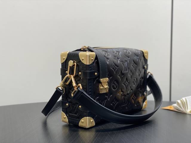 Factory Price: p Premium Original M26304 Chocolate Waxed Leather Full Embossed Soft Box. The Side Trunk Medium Handbag continues Louis Vuitton's trunk-making tradition in the Fall/Winter 2025 Collection. Crafted from iconic Monogram Saga leather, this Side Trunk Medium handbag's vintage texture is inspired by the classic trench coat worn by supermodel Freja Beha Erichsen at Nicolas Ghesqui