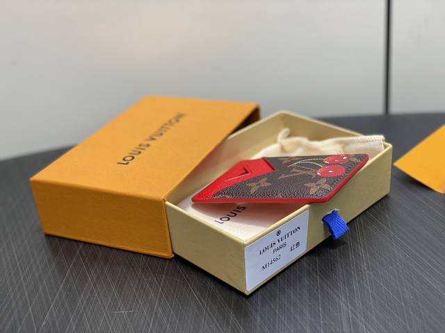 Factory Price P Top Original M14562 Monogram Red Cherry Magnetic Mobile Phone Card Holder This Magnet Card Holder Is Made Of The Brand's Classic Monogram Coated Canvas With Built-In Magnetic Design To Easily Attach Mobile Phones Equipped With Magsafe Magnetic Technology Cherry Pattern Highlights The Smart Style Of The Louis Vuitton X Takashi Murakami Replica Series Bright Card Interlayer With Finishing Details 9.5 X 0.5 X 6.5 Cm