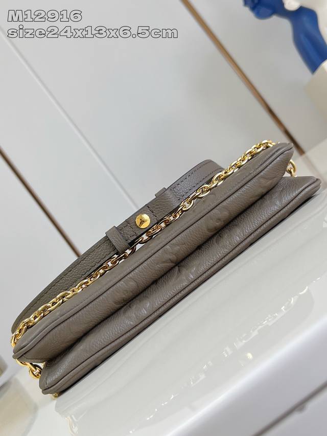 Factory Price p Top-grade original M12916 light green embossed Monogram Empreinte leather. The Liv pochette fits snugly on the arm. It features a detachable gold chain and a removable, adjustable double strap crafted from Louis Vuitton's signature natural cowhide leather. A secure double zipper closure and an engraved gold plaque complete this stylish piece. Size: 24 x 13 x 6.5 cm
