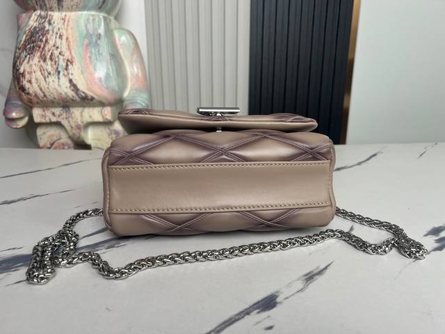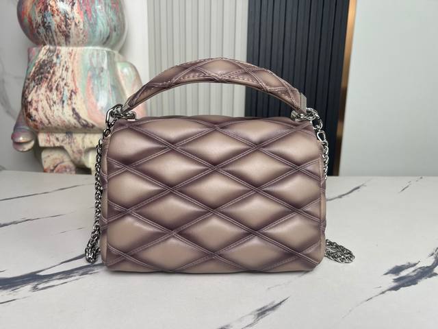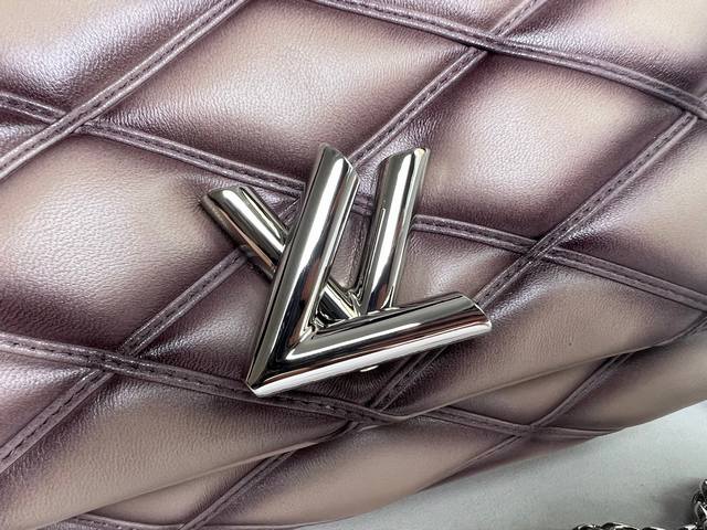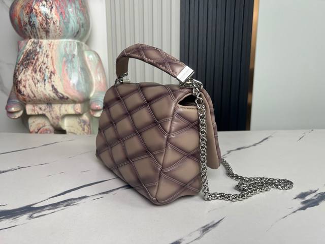 Factory Price (p) Top-Quality Original Home Photo M22891 Silver-Gray All-Leather Diamond Quilted Chain Bag Series Go-14 Teist Medium Handbag M23045 M22890 This Go-14 Medium Handbag is crafted from luxurious lambskin leather, featuring a quilted pattern that pays homage to the brand's heritage luggage. The Lv Twist lock adds a striking touch. The top handle can be carried by hand or converted into a sliding chain strap with a leather shoulder pad for comfortable shoulder or crossbody carry. Dimensions: 23 x 16 x 10 cm.