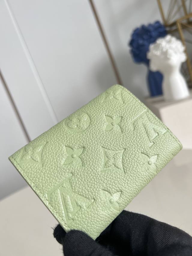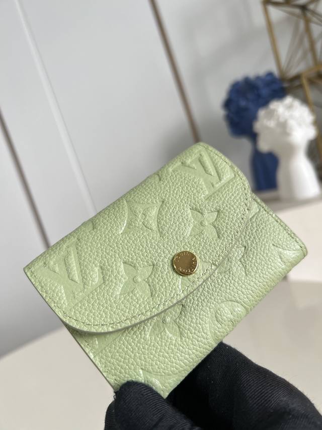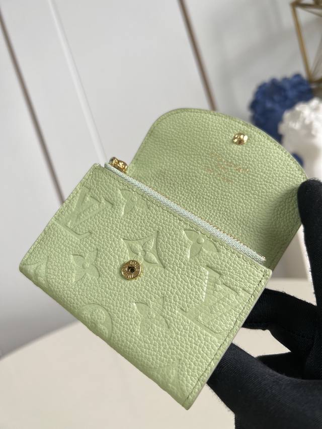 Factory Price: p. Top-quality original M25809 green. This Rosalie coin purse is crafted from supple Monogram Empreinte grained leather and embellished with the iconic Monogram embossed pattern. This petite and feminine coin purse features a rounded flap fastened with a gold Louis Vuitton signature snap closure. It also features a zippered coin compartment, a flat pocket, and two credit card slots. 11 x 8 x 2.5 cm (Length x Height x Width