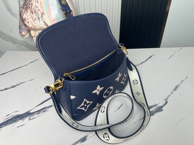 Factory price p Top-quality original single-handedly photographed M47161. 46386 Navy Blue Full Leather Baguette Series. This Diane handbag is crafted from Louis Vuitton's classic Monogram Empreinte embossed leather, featuring the brand's logo woven into the detachable wide jacquard shoulder strap. M46846 Light Blue M46388 White M46386 Black Full Leather Embossed Embroidered Fabric Shoulder Strap. Double shoulder strap bag. Oo [Handshake] [Handshake] Add a crossbody option to the detachable leather shoulder strap, flexibly adapting to either an elegant or sporty style. Detailed Features: 23 x 16 x 8.5 cm.