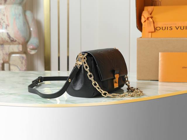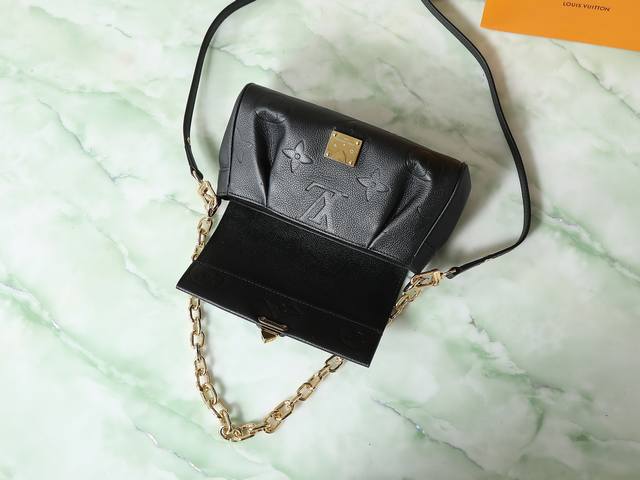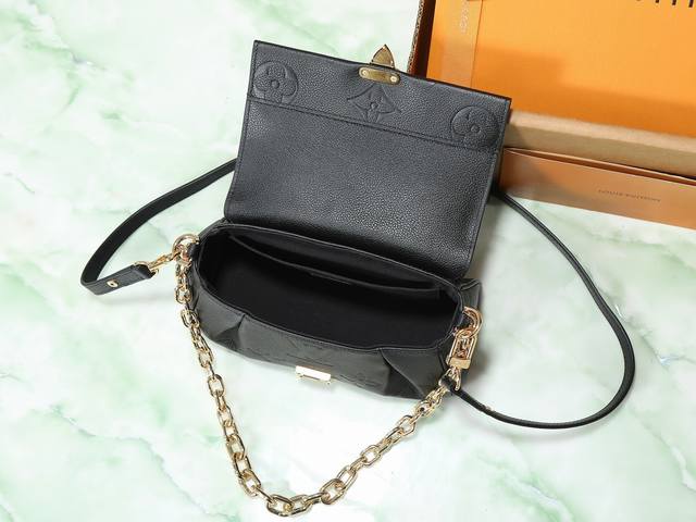 Factory Price p Top-Tier Original Individual Shot M45813 Black Full Leather Favorite Handbag. This handbag features soft grain leather embossed with an oversized Monogram pattern. Gentle pleats add a high-end feel, and the magnetic closure continues Louis Vuitton's heritage. The detachable and adjustable shoulder strap allows for short shoulder or crossbody wear, while the detachable chain is suitable for evening occasions. Dimensions: 24 x 14 x 9 cm.
