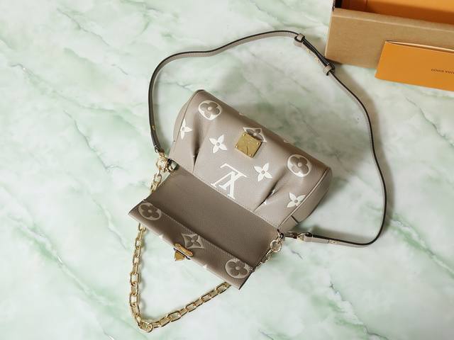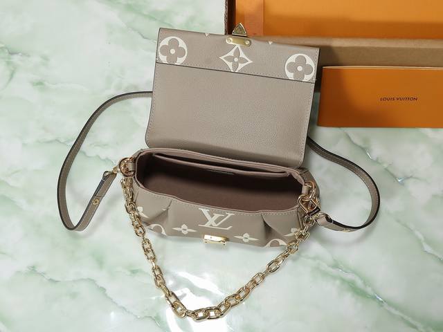 Factory Price p Top-Tier Original Individual Shot M45836 Grey Silkscreen Full Leather Favorite Handbag. This handbag features soft grain leather embossed with an oversized Monogram pattern. Gentle pleats add a high-end feel, and the magnetic closure continues Louis Vuitton's heritage. The detachable and adjustable shoulder strap allows for short shoulder or crossbody wear, while the detachable chain is suitable for evening occasions. Dimensions: 24 x 14 x 9 cm.