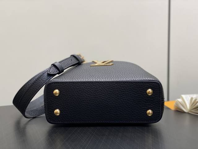 Factory Price p Top-Tier Original M14177 Black Diamond Handle Full Leather Capucines Mini Handbag (Na Ying Style). This Capucines mini handbag is from the Exceptionals series, crafted from Taurillon calfskin, making it a collector's choice. Rhinestones add a jewel-like touch to the LV logo, while the dazzling flower-shaped handle echoes the classic Flower Crown necklace design. It can be carried in multiple ways, either with the flap tucked in or worn outside. Dimensions: 13.6 x 8 x 21 cm (H x W x Length)