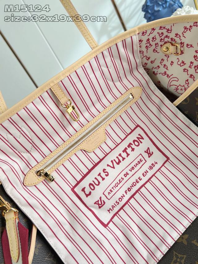 Factory Price p Top-Tier Original M15124 This version of the Neverfull Inside Out large handbag brings classic details to life with the artistic talent of former American Vogue creative director Grace Coddington, making a striking appearance in the LV Travels With collection. Exquisite Monogram canvas and a chic cat print adorn both sides, while the fabric shoulder strap and Louis Vuitton label showcase Coddington's handwritten style. 32 x 19 x 39 cm (H x W x Length) DDD