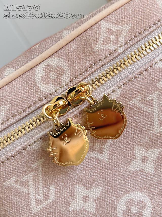Factory Price p Top-Tier Original M15170 This Nice Mini Makeup Bag is from the Louis Vuitton x Grace Coddington collaboration. It playfully reimagines the Monogram pattern on Meowgram canvas, drawing inspiration from 1900s trunks. The adorable cat-shaped zipper pull reflects Coddington's love of cats, and the washable fabric lining completes the details. 13.5 x 12 x 20 cm (H x W x Length) DDD