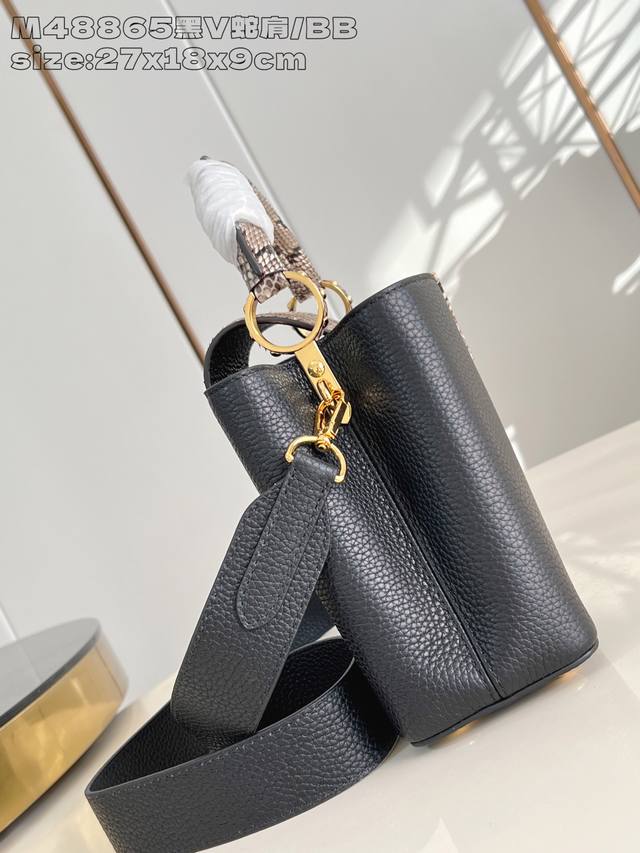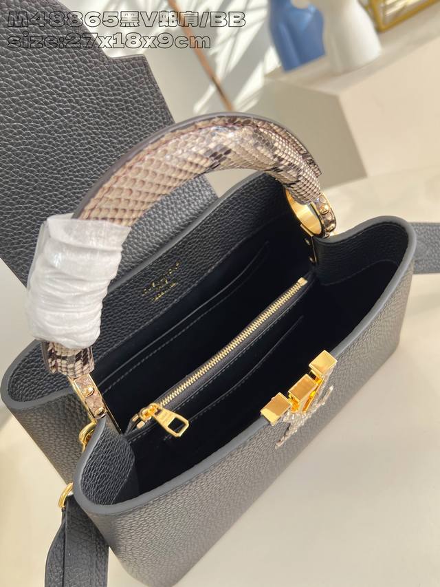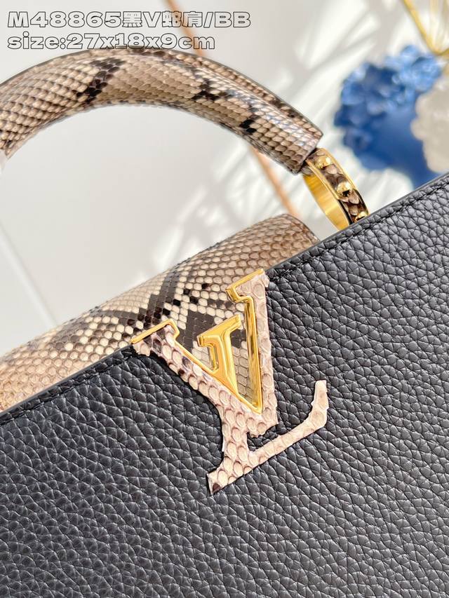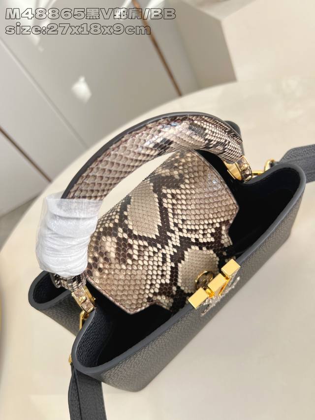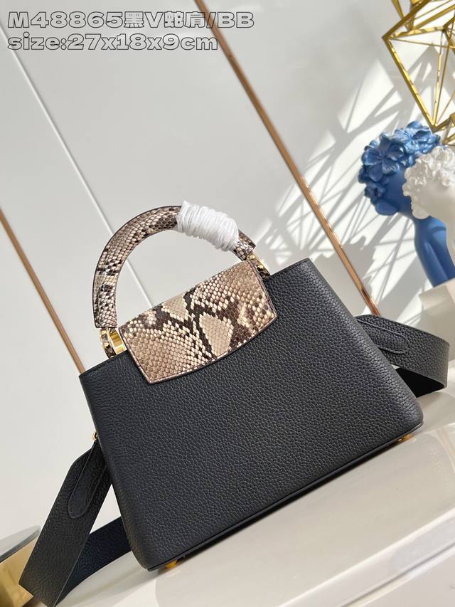 Factory Price p Top-Tier Original M48865 Black V Snake Shoulder Small Capucines BB handbag. This Capucines BB handbag is crafted from deep-dyed Taurillon leather, with luxurious python leather wrapping the handles, flap, and LV logo. Whether carried by hand or over the shoulder using the detachable wide shoulder strap, it's perfect for any occasion. Size: 27X18X9Cm DDD
