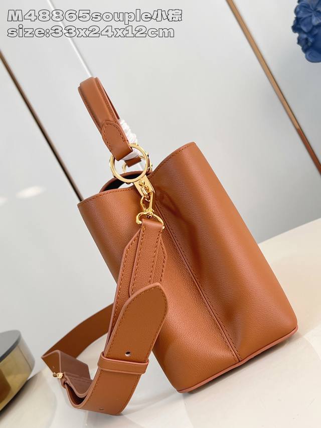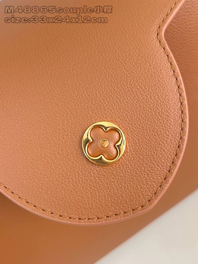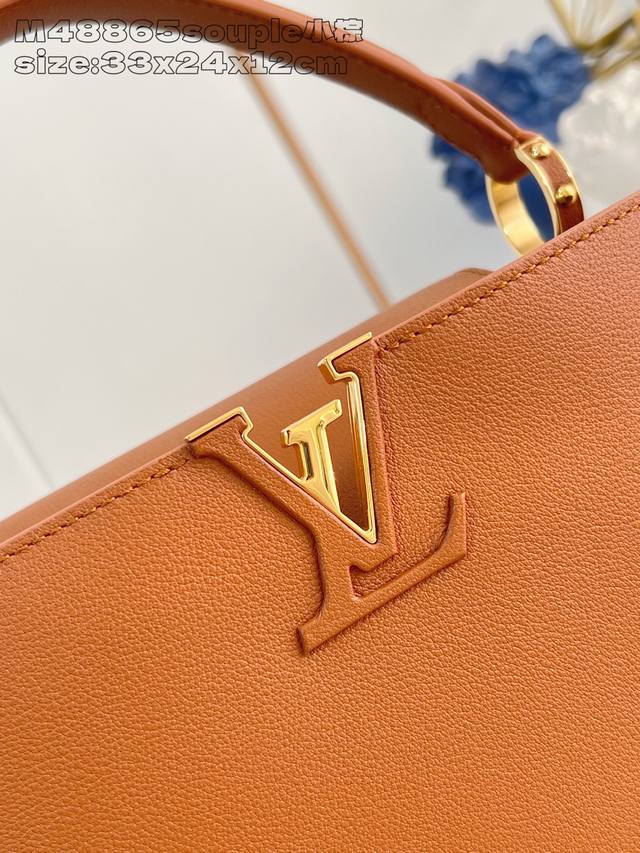 Factory Price p Top-tier original M48865 Souple Capucines Souple medium handbag, featuring a fine grained cowhide leather, contrasted with a suede lining and dazzling metal hardware, while the LV monogram embodies the brand's heritage. The flap can be folded inwards or outwards, and the compartments and pockets neatly organize everyday essentials, offering multiple carrying options. 33 x 24 x 12 cm (Length x Height x Width)