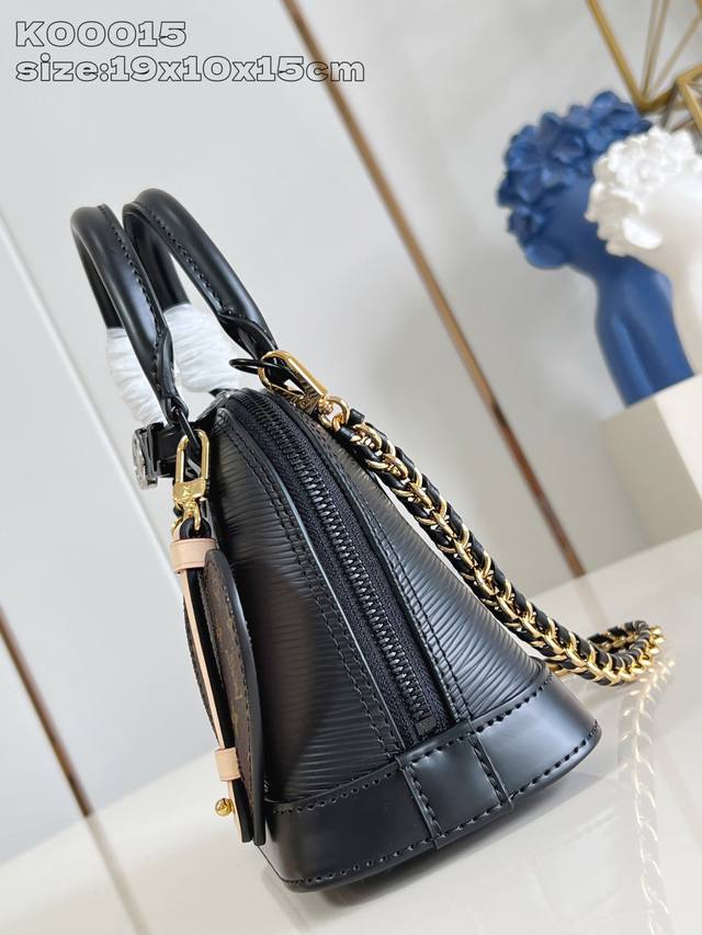 Factory Price: Premium Original K00015. This black Alma mini bag from the Lv&I Custom Collection features a refined silhouette crafted from Monogram canvas, perfect for everyday travel with a variety of carry options. Choose from a shoulder strap or chain, then add charms to your style. Choose from three slide-in decorative padlocks, the Lv Circle logo, and more for a personalized touch. 19.5 x 10 x 15 cm (H x W x L) (