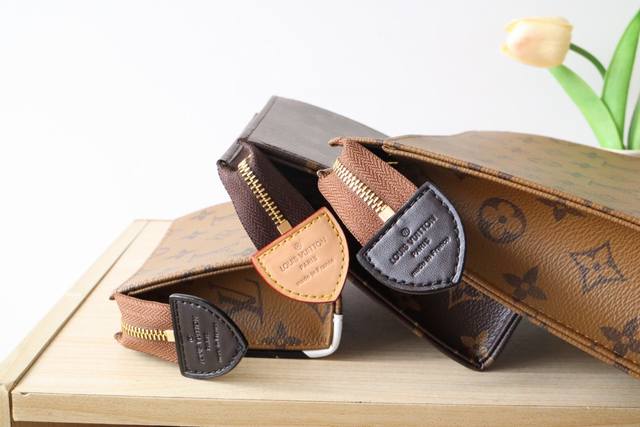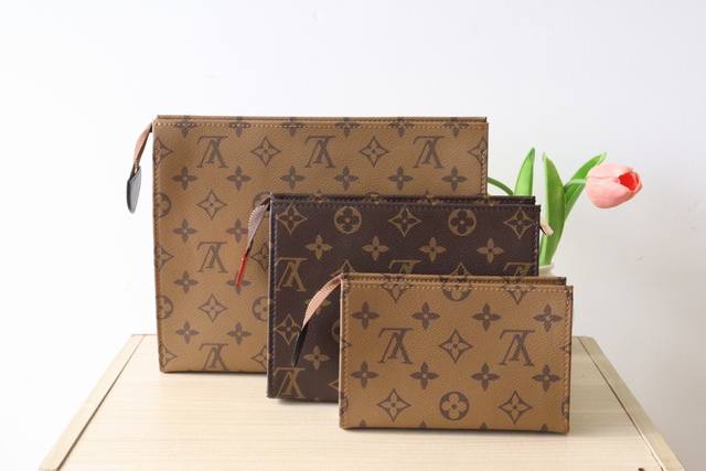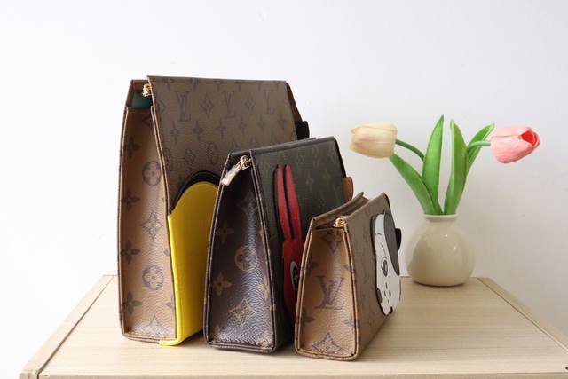 Factory Price. Top-quality original leather, top-grade original single item with complete boutique packaging M11254 Three-piece set DDD A collection of three different sizes of cosmetic bags, the "Trio of Boschtovares". Made of Monogram Reverse canvas with a brightly colored, water-washable lining. As part of an exclusive collaboration between Louis Vuitton and Chinese artist Sun Yitian, each cosmetic bag features a calfskin patch depicting animals in her distinctive cartoon style. DDD 25 X 20 X 5.5 Cm DDD