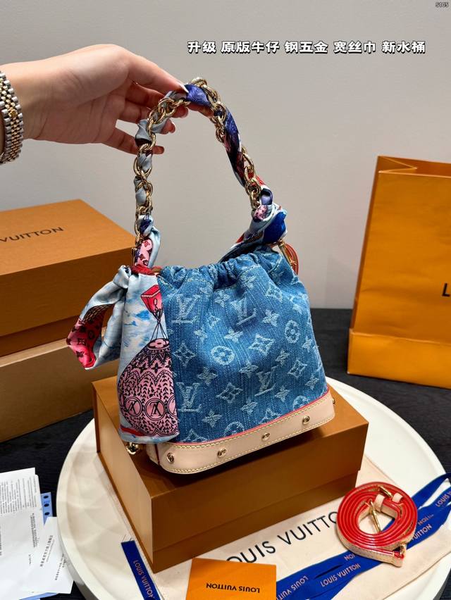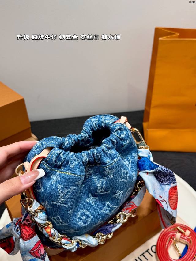 Upgraded color-changing leather and steel hardware with a wide silk scarf