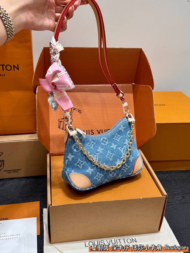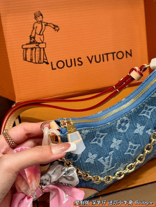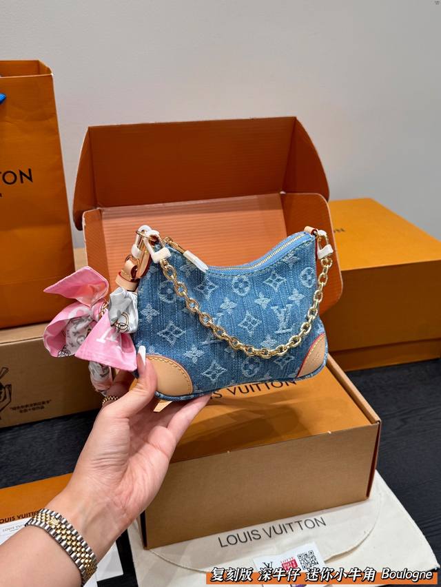 Lv new bag cute version of denim jeans middle-aged dark color mini ox horn Boulogne