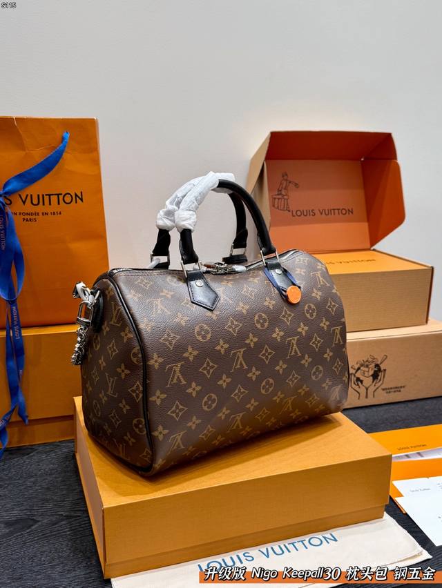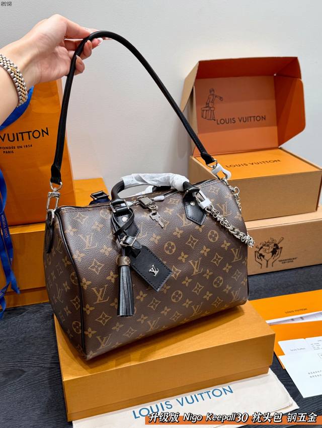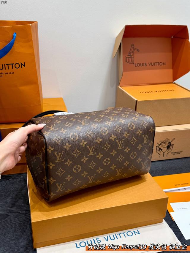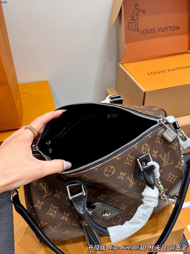 Lv X Nigo Keepall30. Pillow bag handbag is the ideal urban handbag. The Soft Crafty Speedy30's iconic shape and classic Monogram canvas, coupled with versatile carrying options and luxurious natural cowhide trim, add a fashionable and avant-garde feel to the bag.