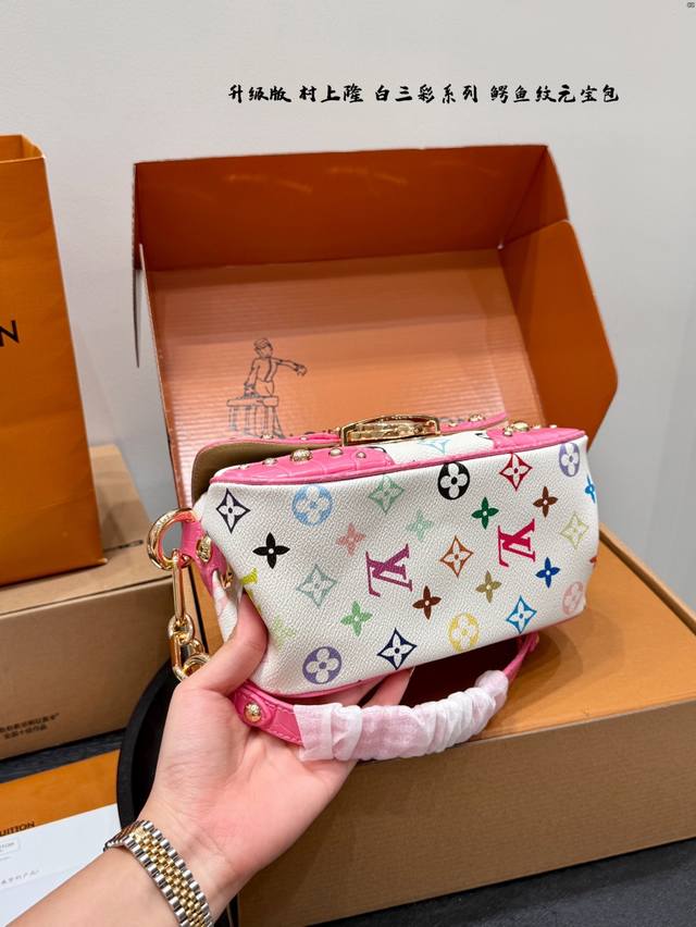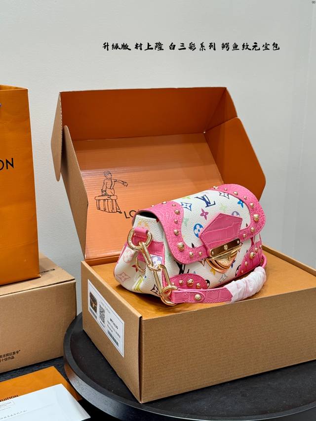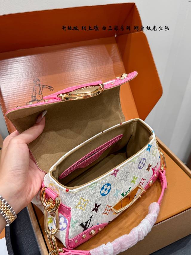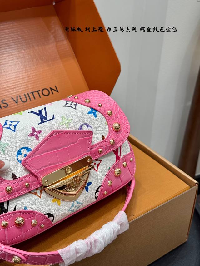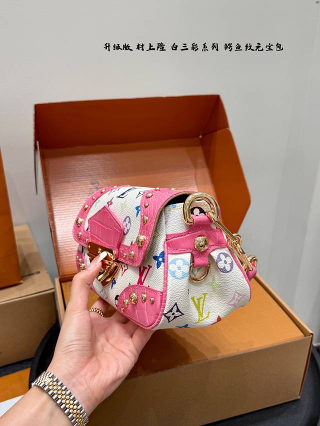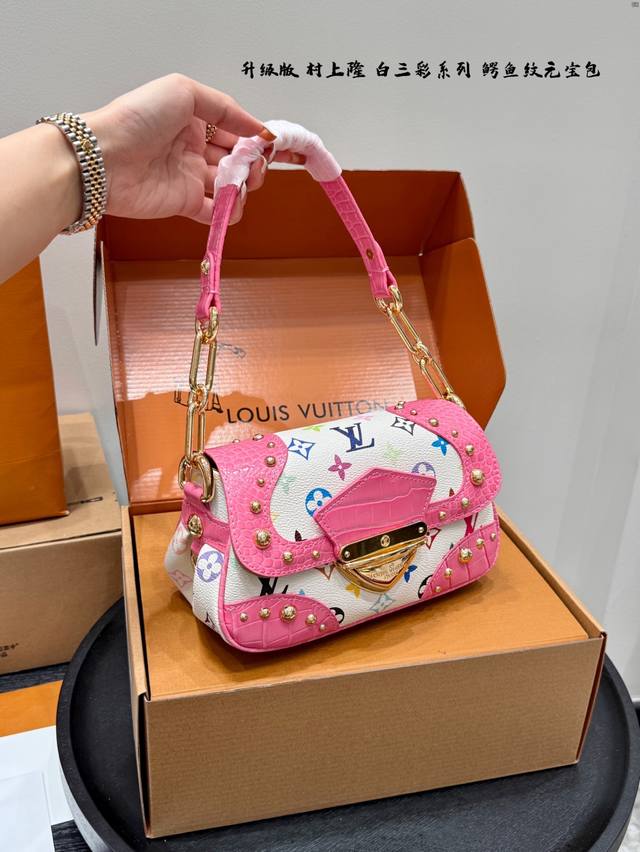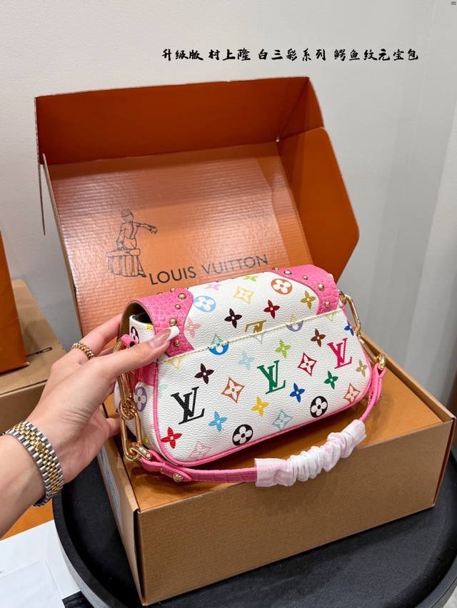 Lv rivet detail black tri-color white tri-color with crocodile pattern Monroe Yuanbao bag underarm bag shoulder handbag