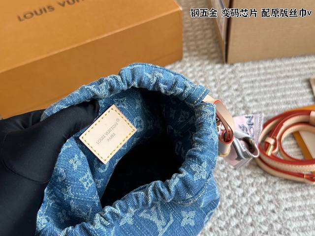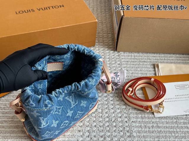 The core characteristic of the LV Denim series is the perfect combination of the brand's signature luxury craftsmanship and classic Monogram pattern with the casual, street-style, and vintage texture of denim. It blurs the line between high fashion and everyday wear. #DenimBag# Drawstring Bucket Bag 15