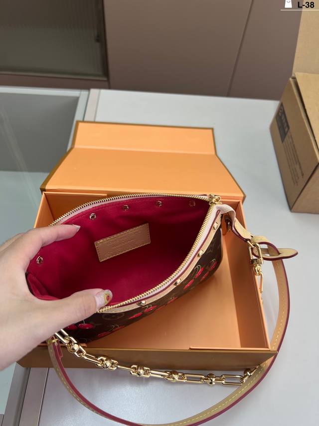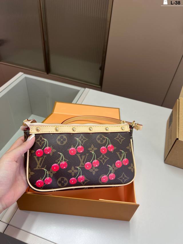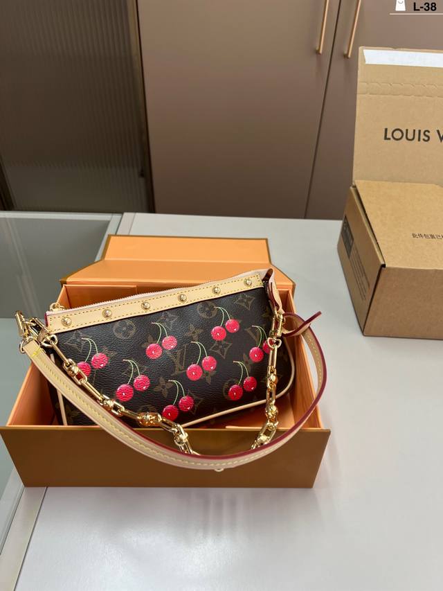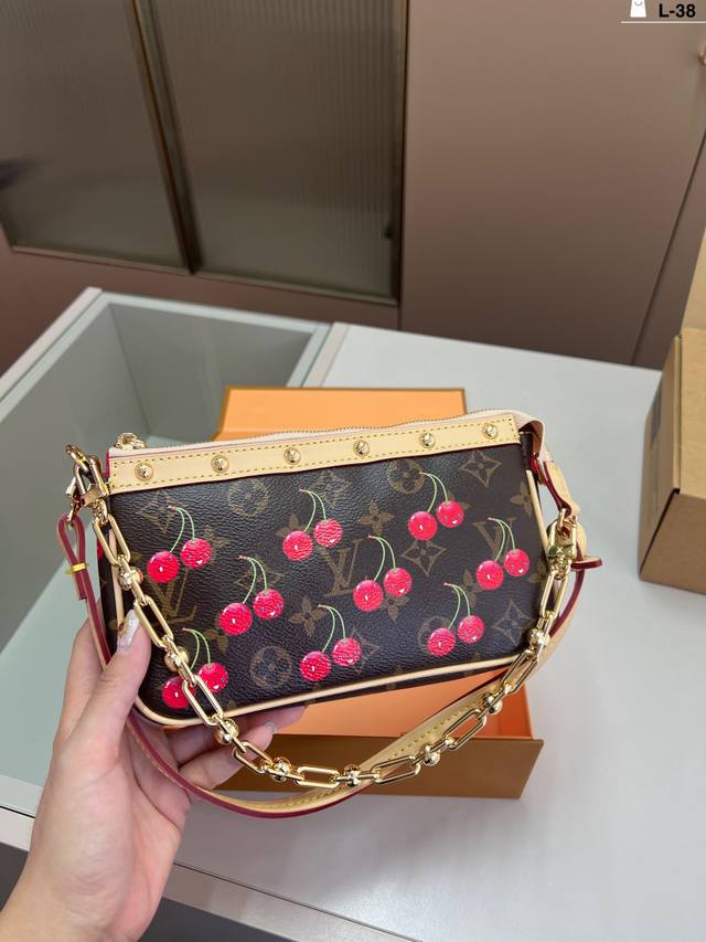 Lv Louis Vuitton cherry mahjong bag, exquisite workmanship, very love the shape and elegant, both beautiful and large, really great, beautiful and durable, can be carried on daily basis, L-38 size 21