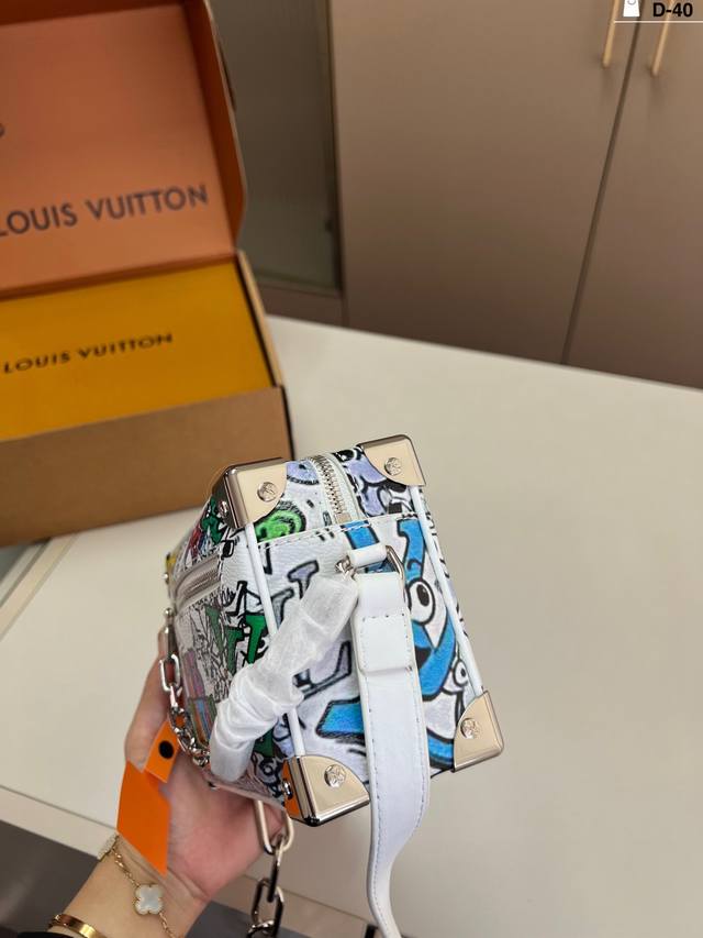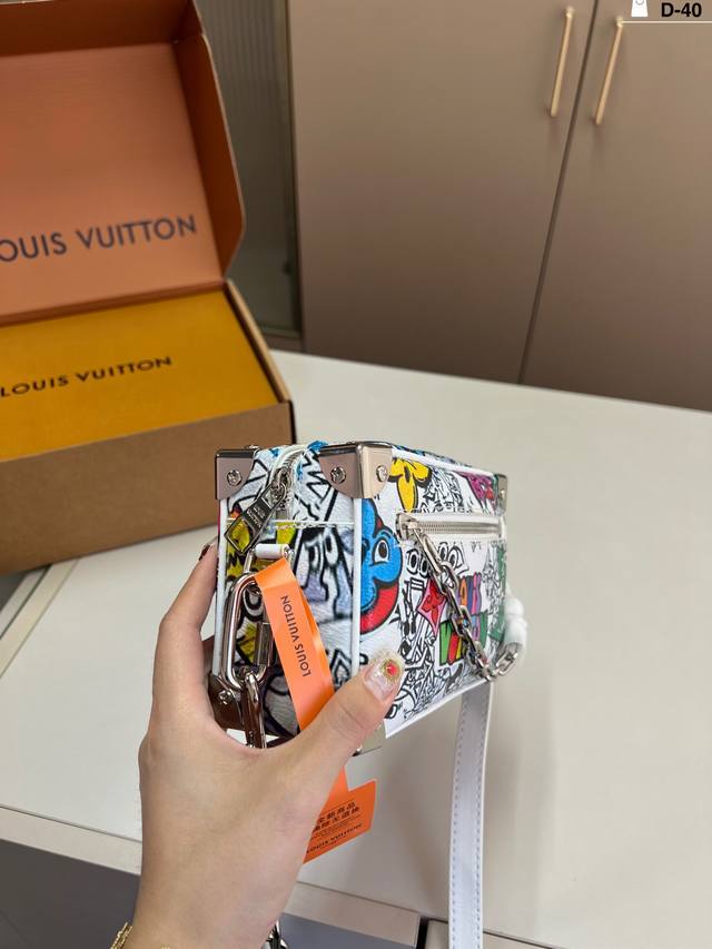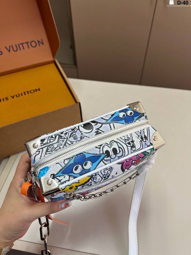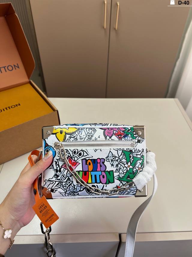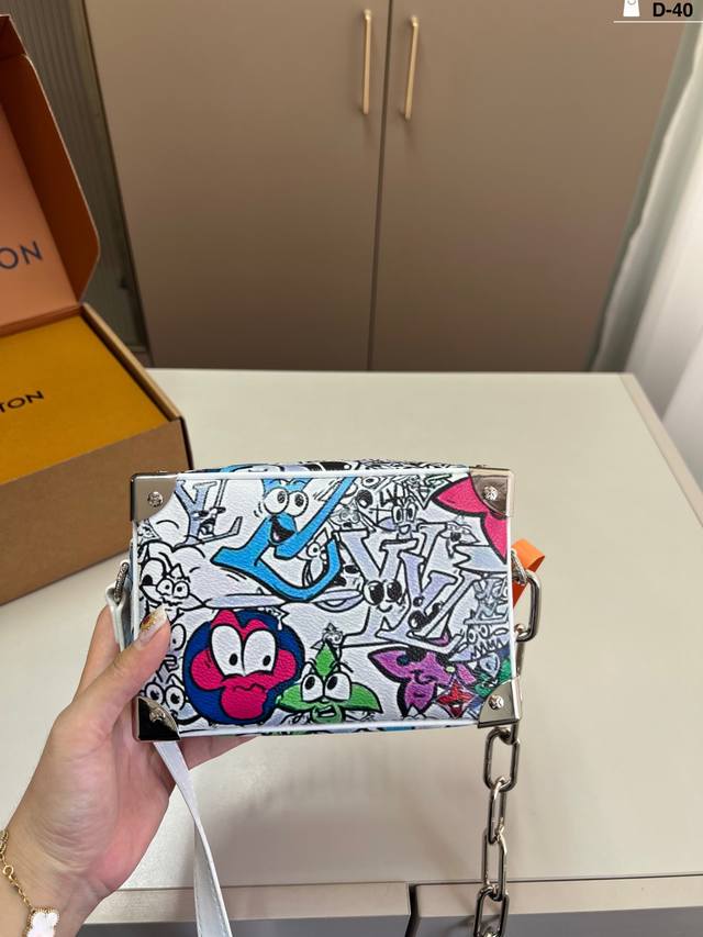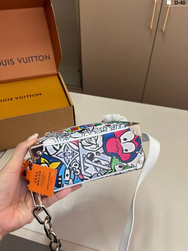 Lv Mini Soft Trunk, the Malle Mini Soft is characterized by its Monogram pattern and chain. This chain can be used to carry this bag on one shoulder or in one hand. D-40 size 18