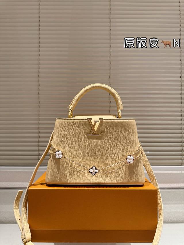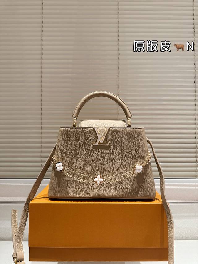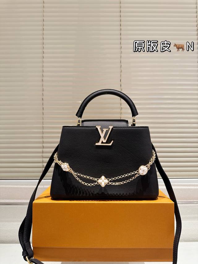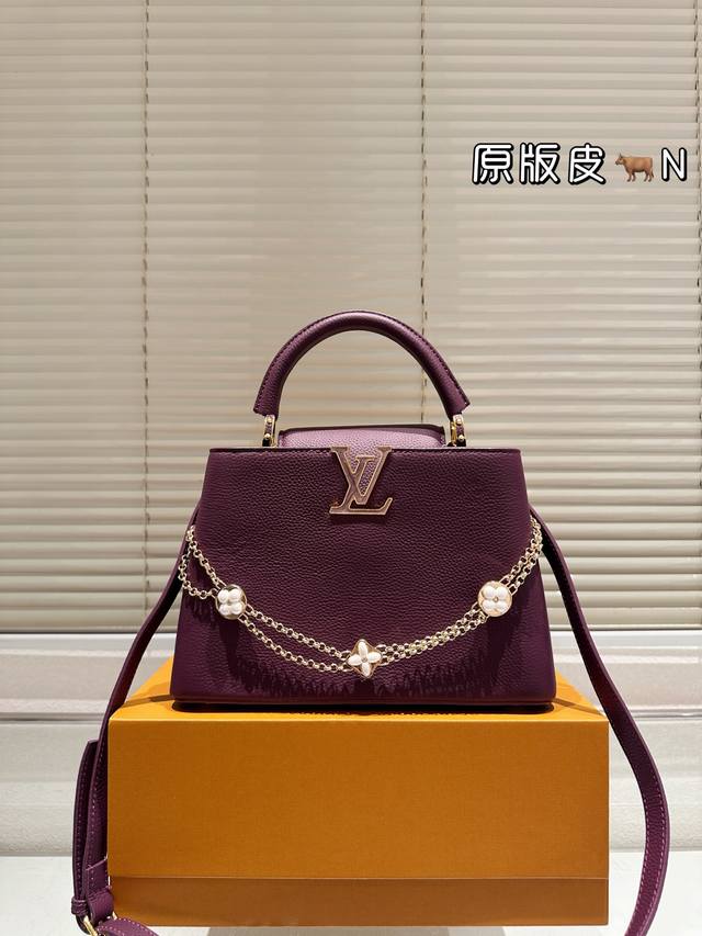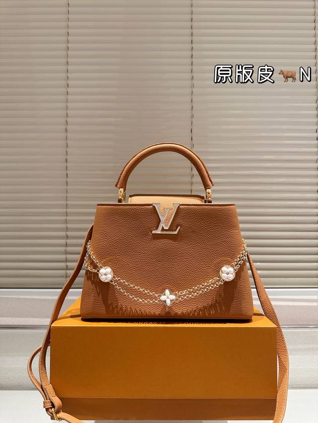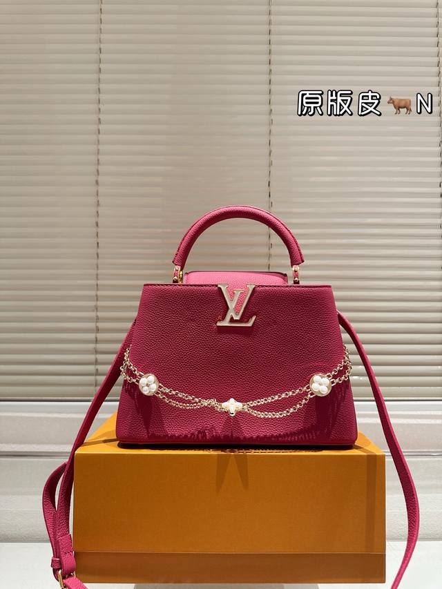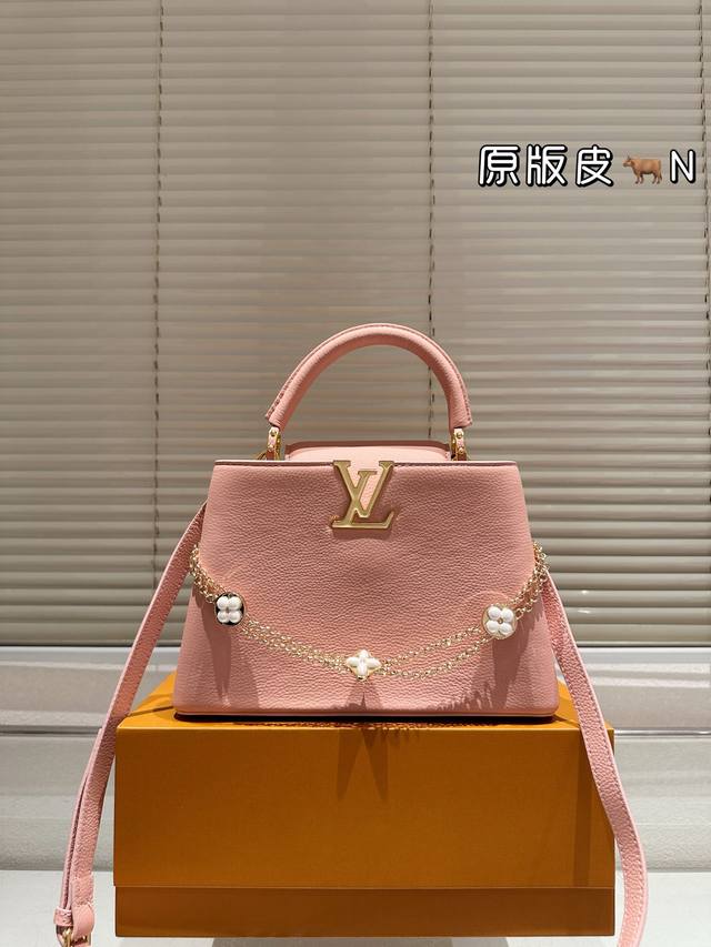 Lvcapucines handbag shoulder bag cowhide with new pendant beautiful 27cm first layer cowhide with box