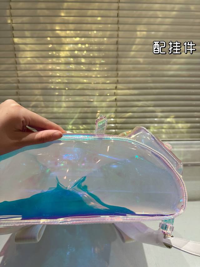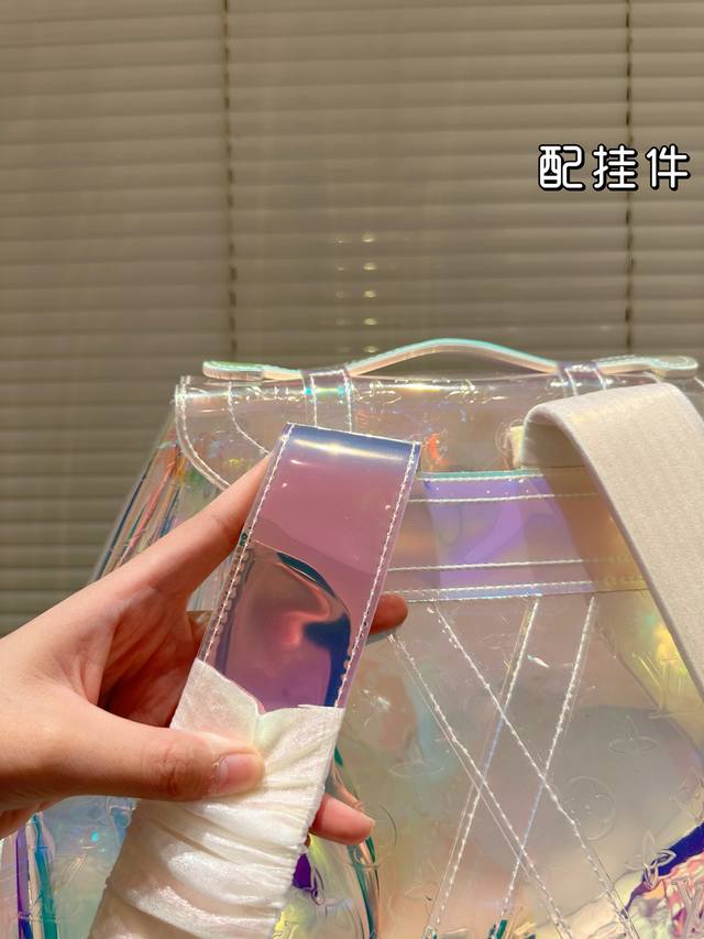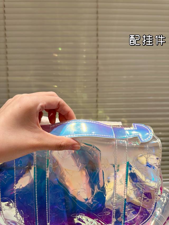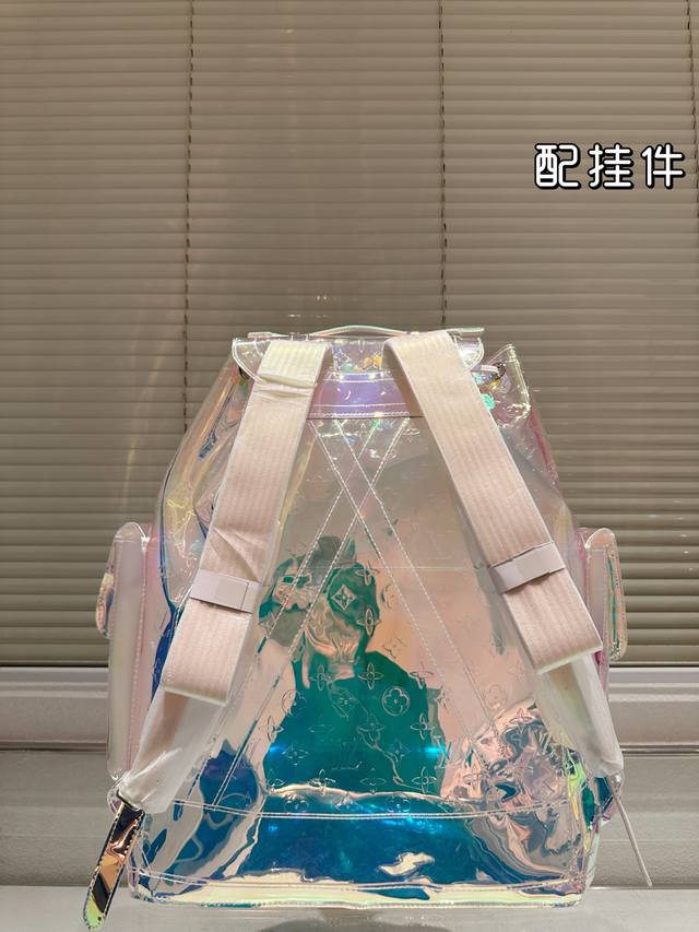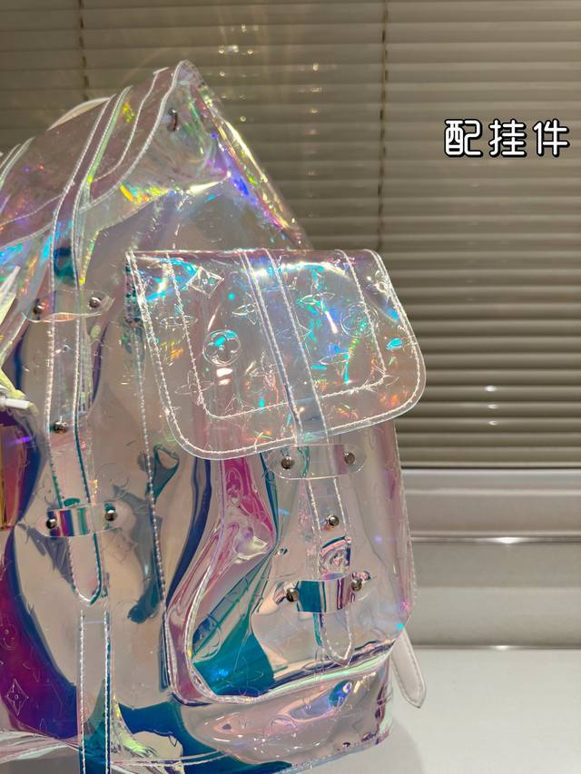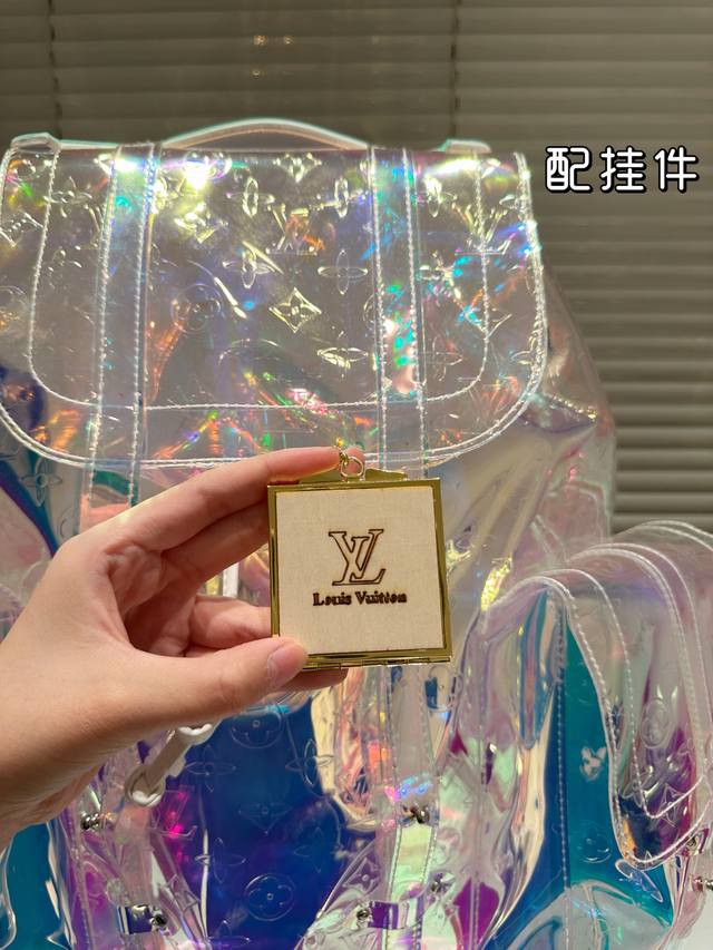 / Lv's new laser bag is so dazzling! Backpack with pendant, large capacity, essent