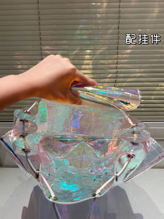 Lv's new laser bag is so dazzling! Backpack with pendant, large capacity, essent