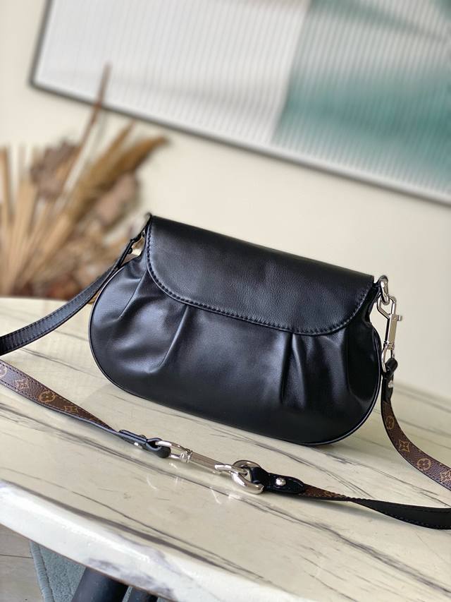 M12192 showcases the brand's elegance with a new collection, launching the Sunsetvibe handbag. Lustrous lambskin leather, Monogram canvas accents, and an LV buckle create a retro-inspired look. Pockets offer convenient storage, and the detachable shoulder strap allows for versatile carrying options. Dimensions: 27